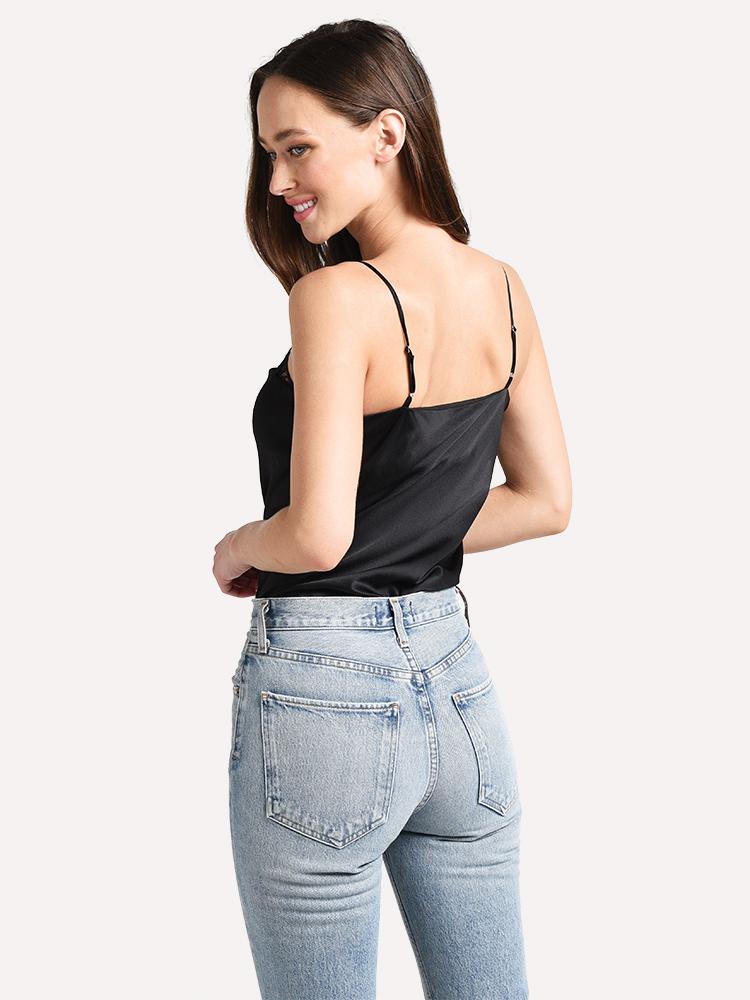 Every girl wants to feel alluring and the Cami The Romy Black Bodysuit hits all the right notes, beginning with a silk charmeuse construction that`s undeniably comfortable and lace peek-a-boo details that give it an extra romantic nod.