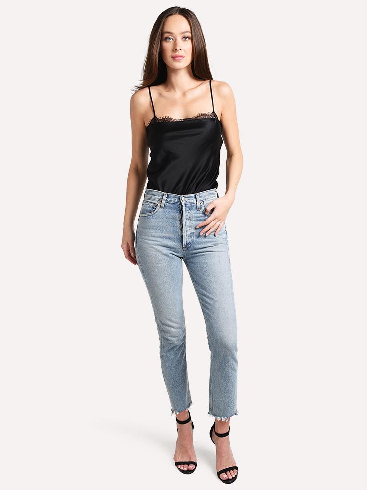 - Styled with Agolde jean Style # A056D-811. Model is wearing Size Small bodysut and size 25 jean.