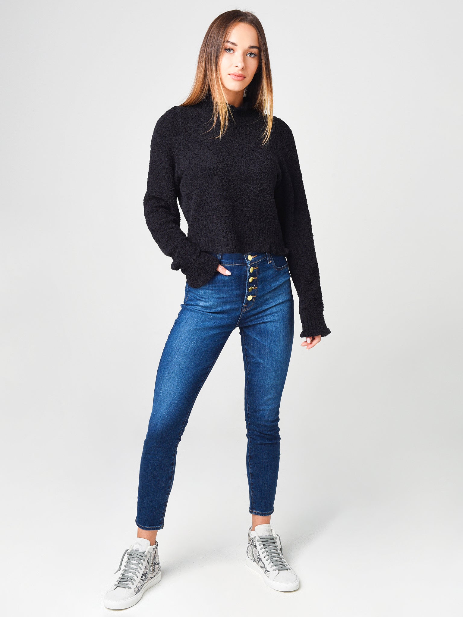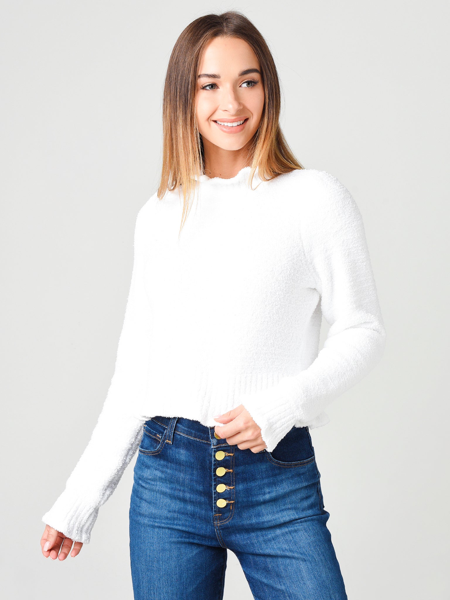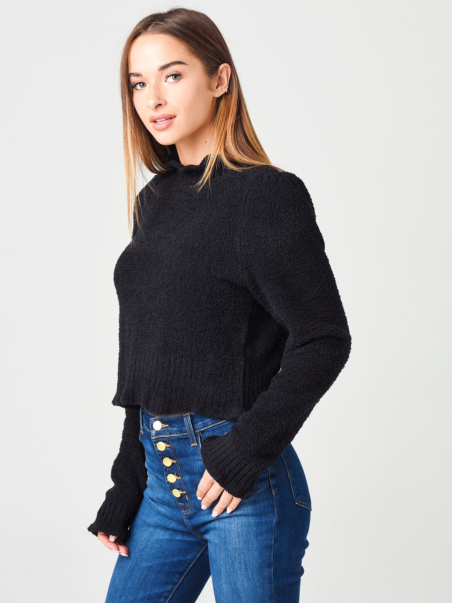 525 Women's Cropped Ruffle Mock Neck Sweater