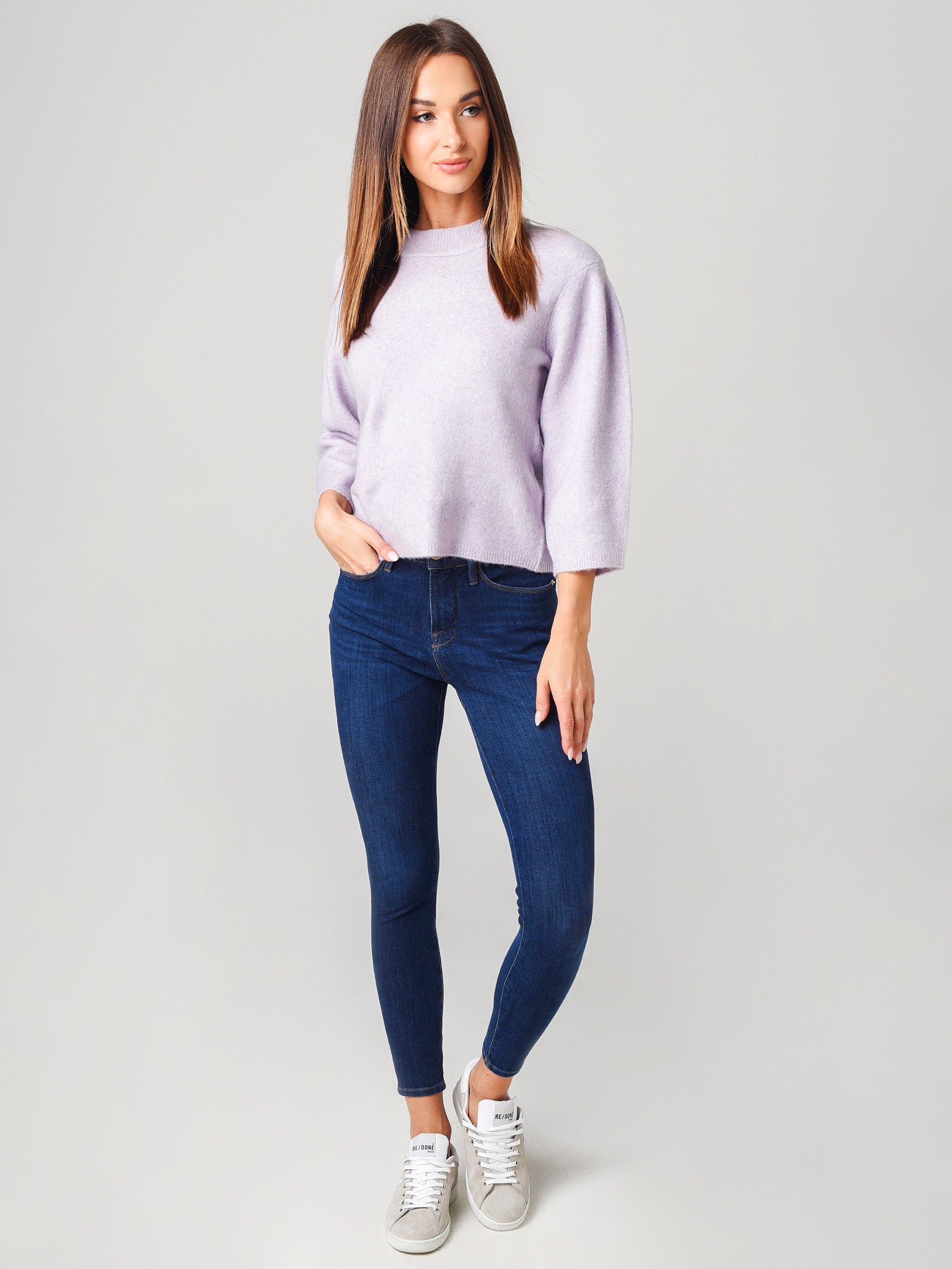 Add some drama to your winterwear with the 525 Cropped Volume Sleeve Sweater.