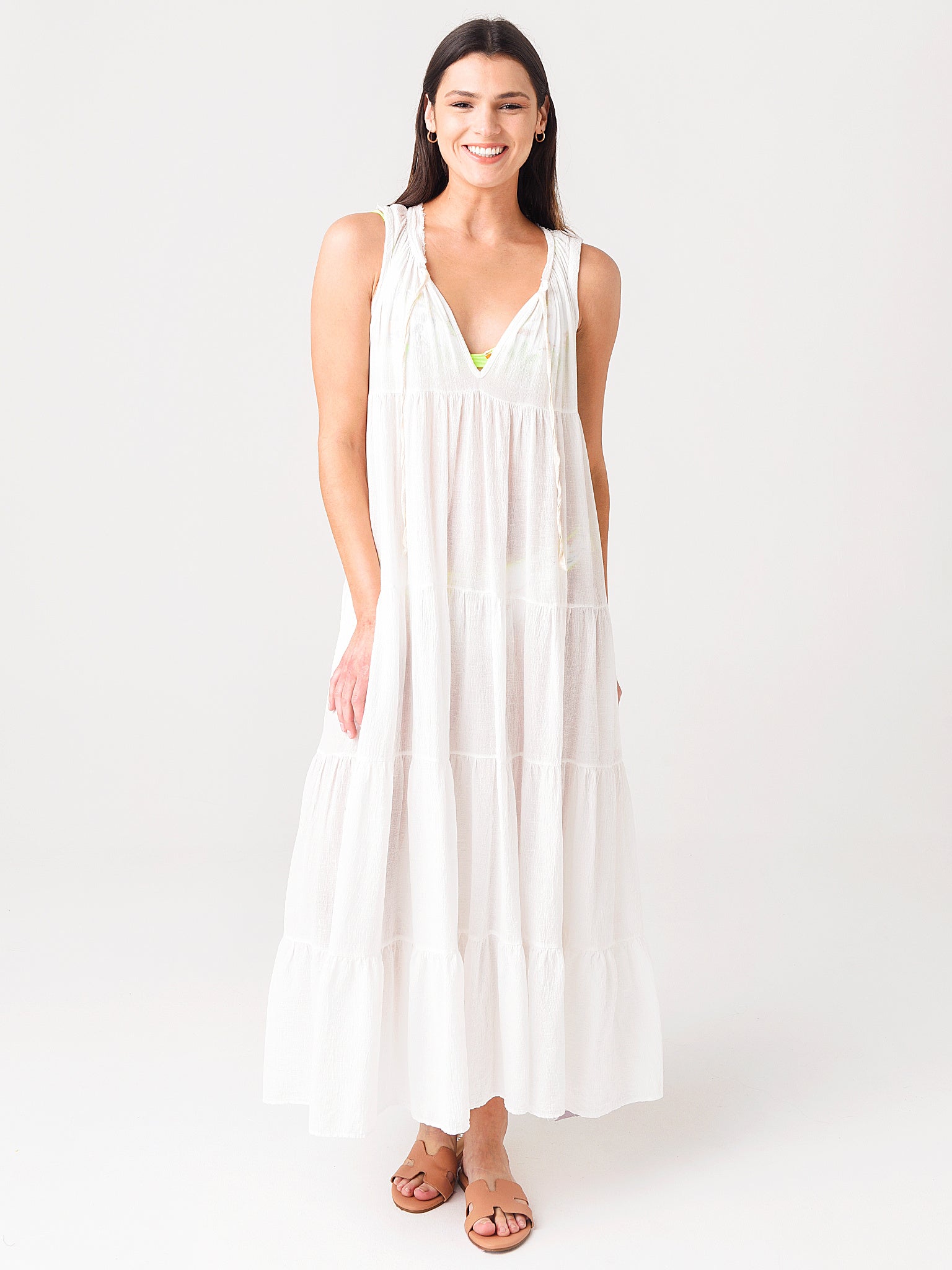 Beach season just got more luxe with the 9 Seed Women's Core Cotton Sleeveless Tier maxi Dress.