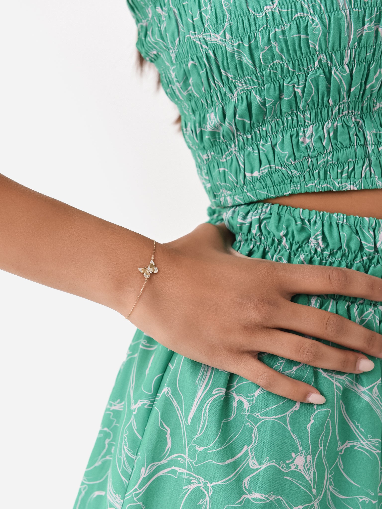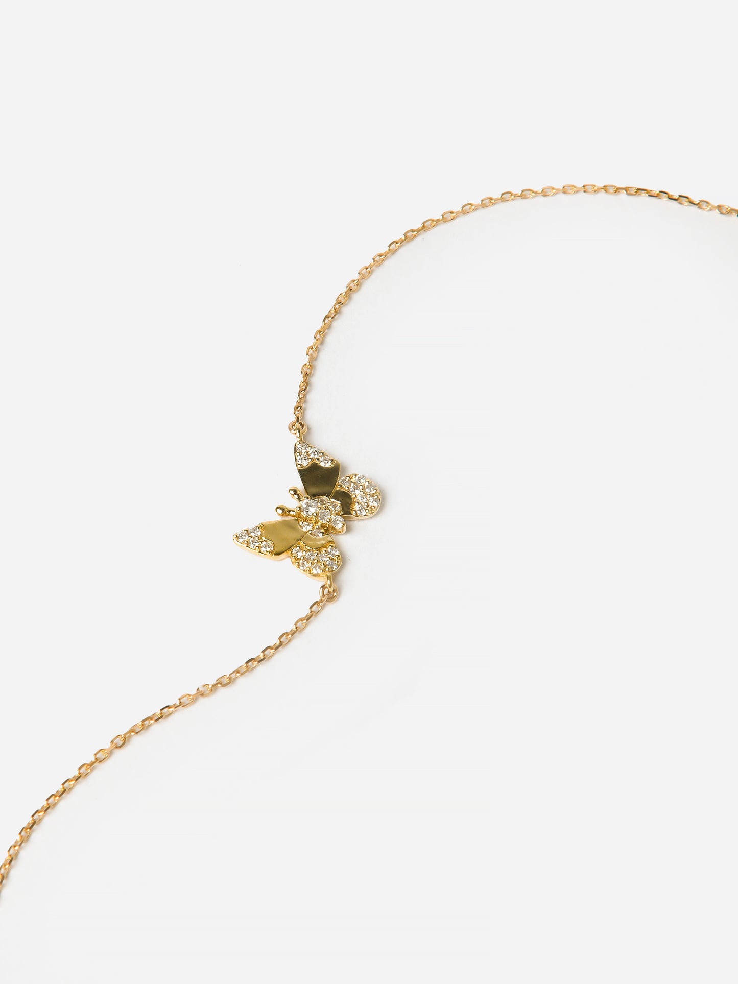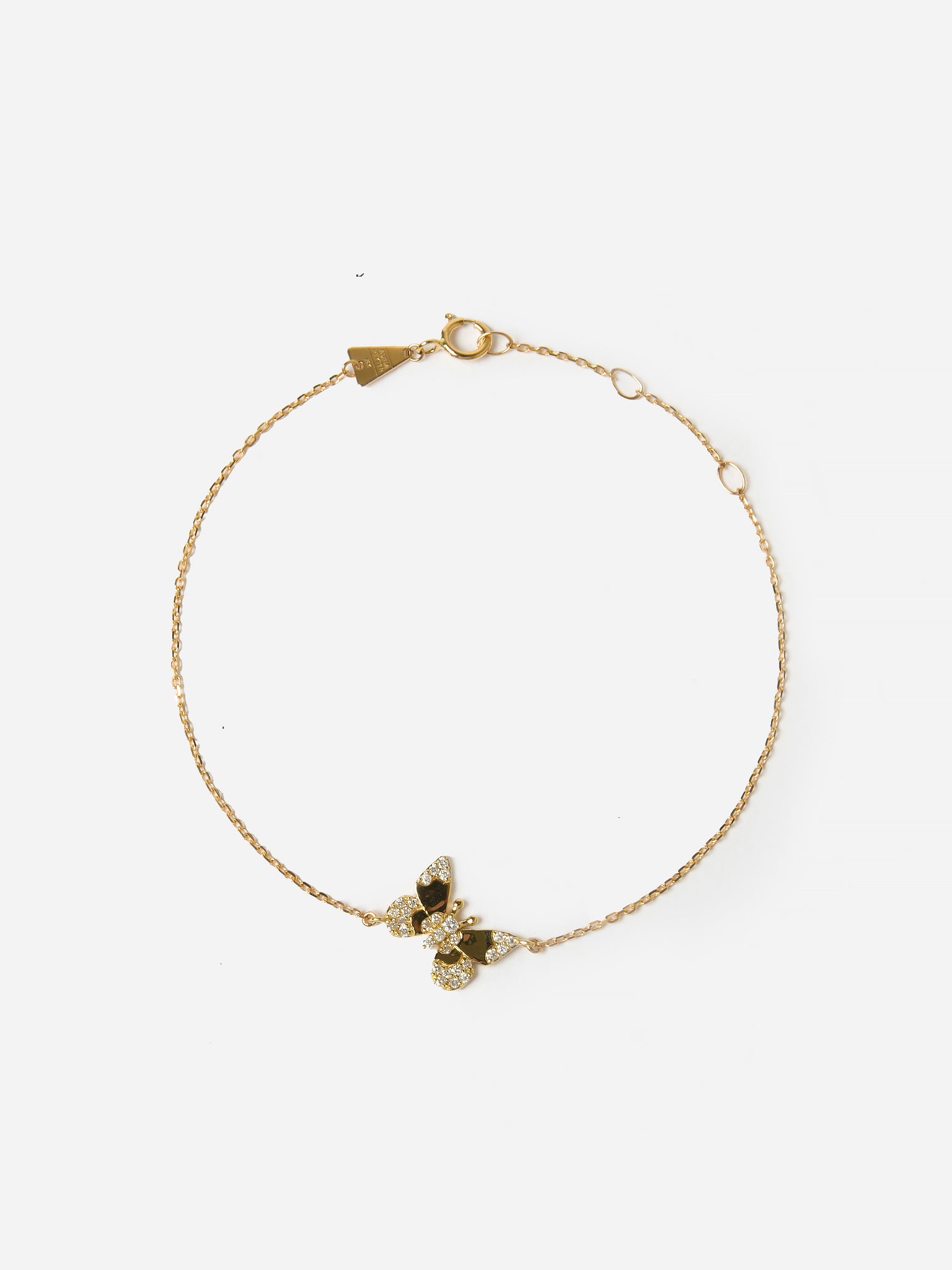 14-karat yellow gold bracelet with hand-set pavé diamonds in a butterfly pendant.