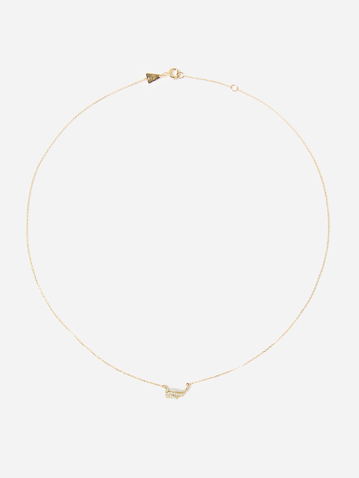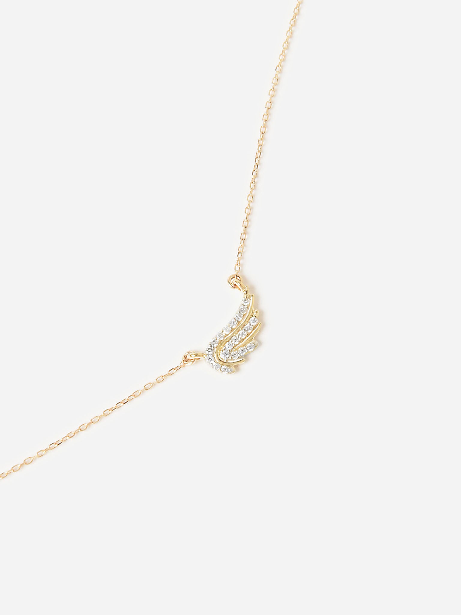14-karat yellow gold necklace with a hand-set pavé diamond wing pendant.