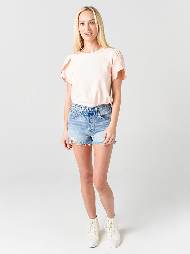 The distressed Agolde Jaden Hi Rise Cut Off Short will be your fav for the season.