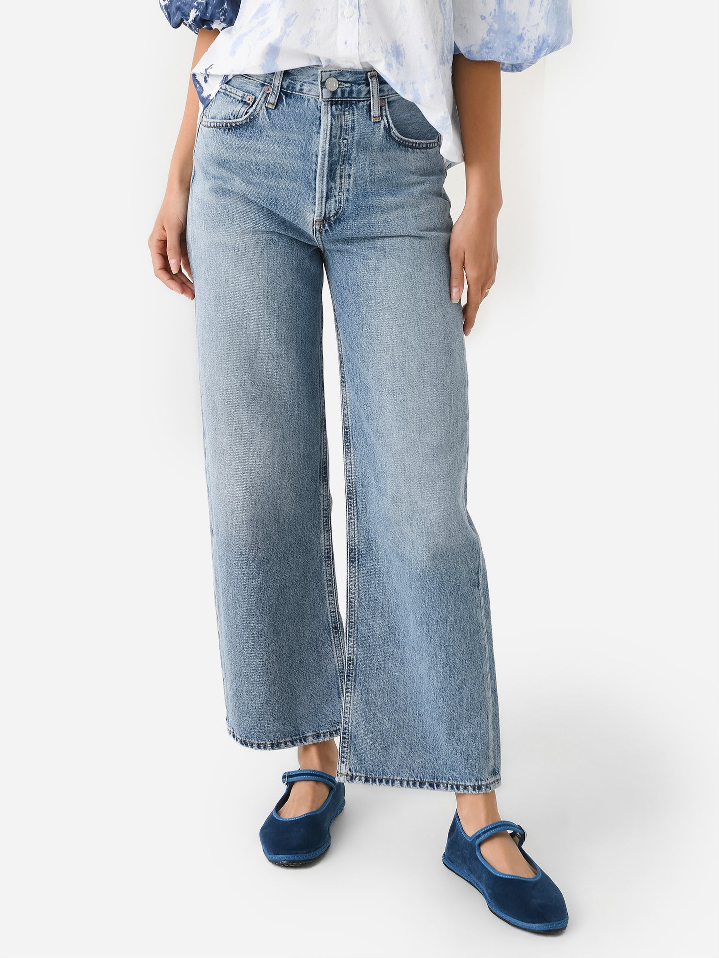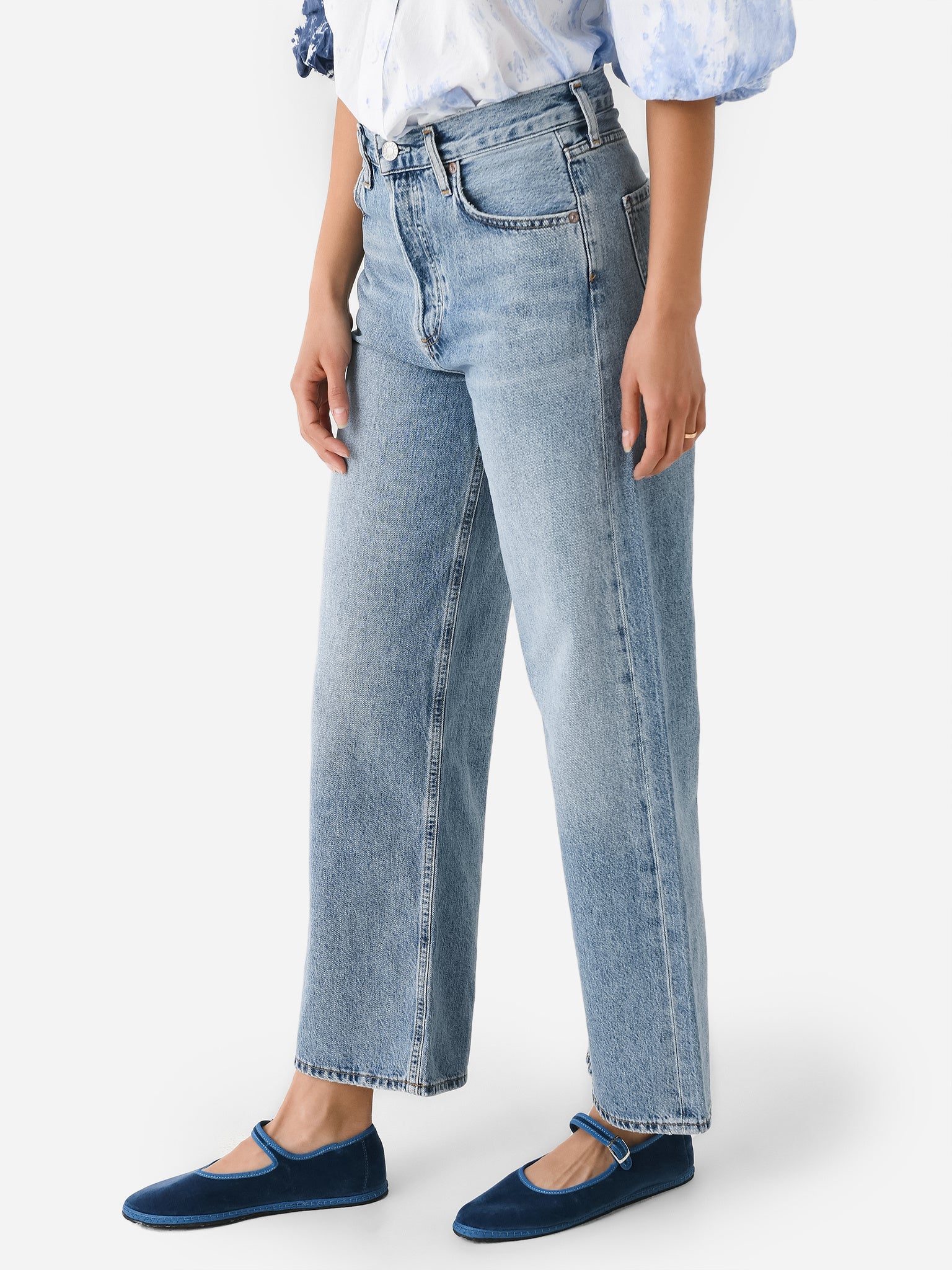 A relaxed, wide-leg jean with a flattering high rise and slightly cropped silhouette.