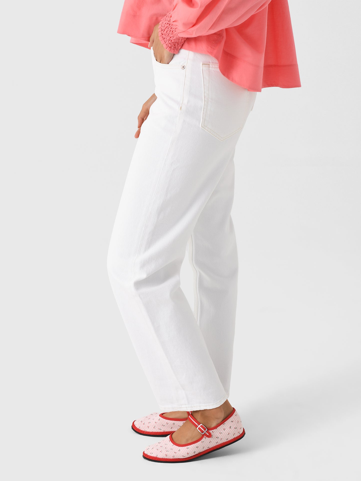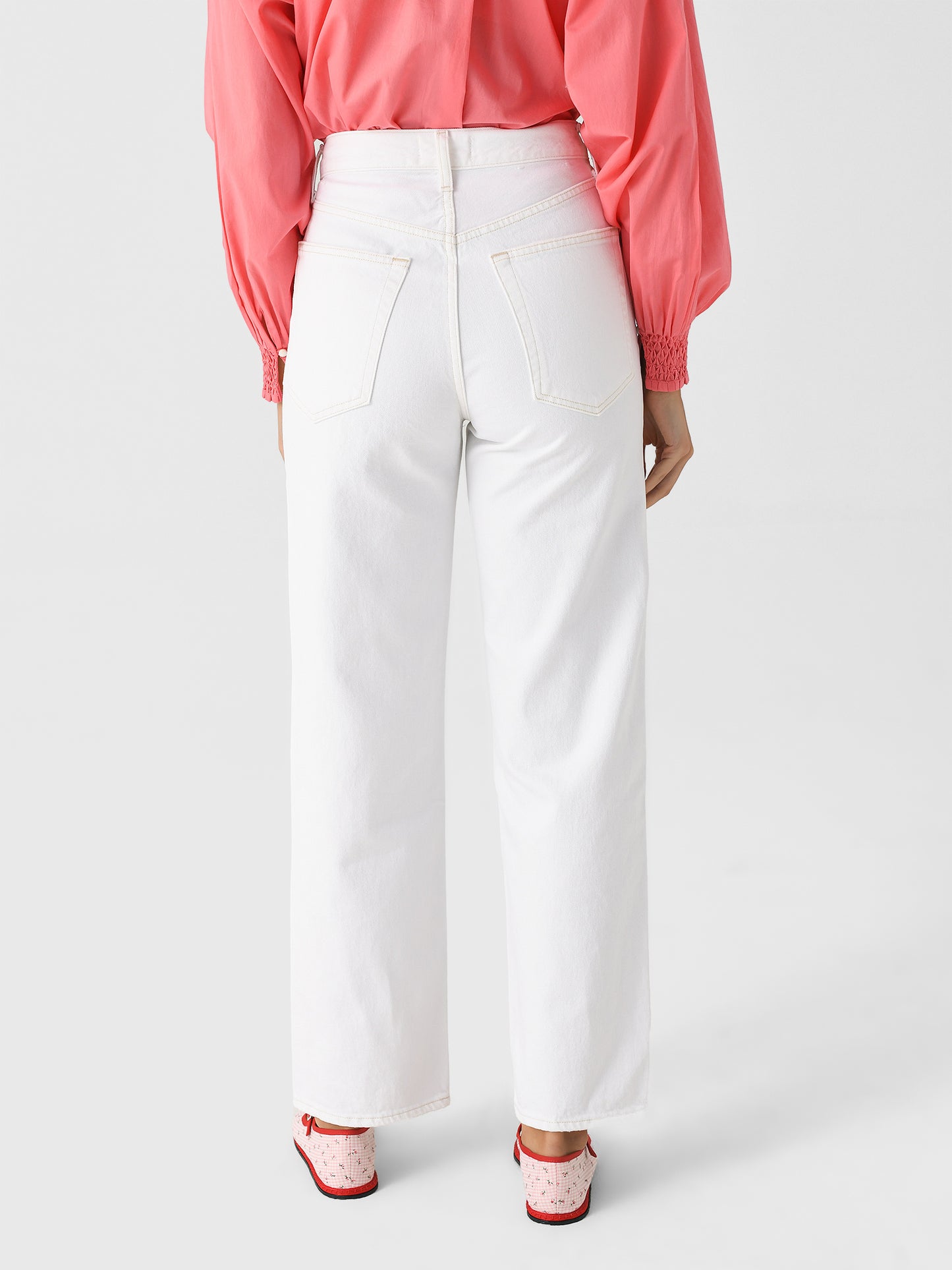 The V-Waist Baggy Jean introduces a new level of style with a unique v-front waistband and fitted top block. The relaxed thigh and full-length straight leg silhouette provide a chic, versatile look.