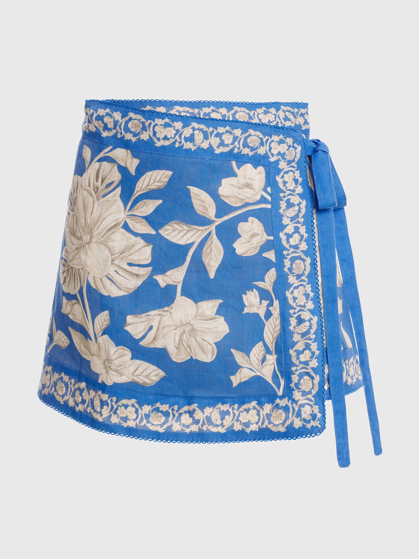 A lightweight cover-up made from woven linen with an elegant floral print.