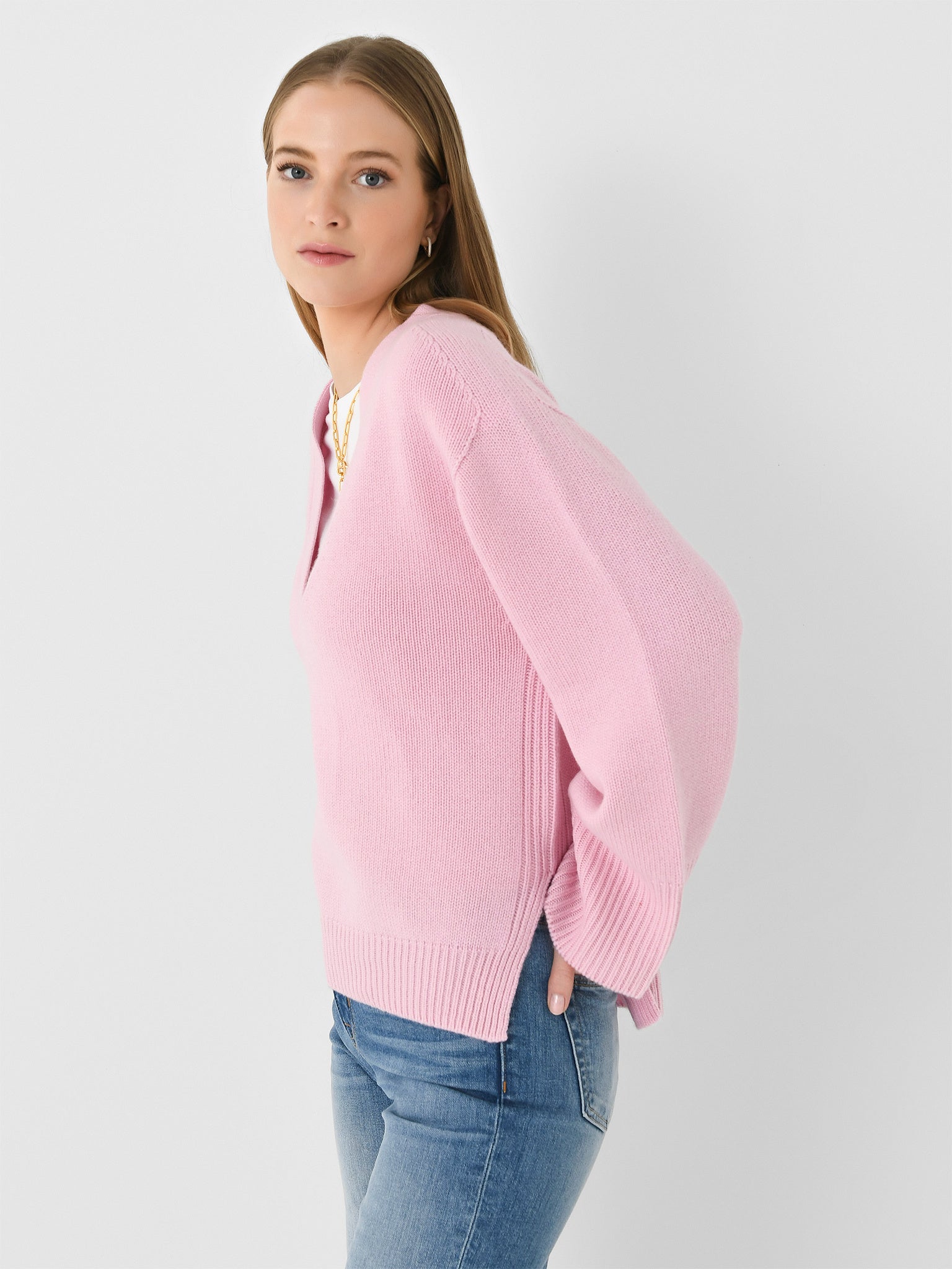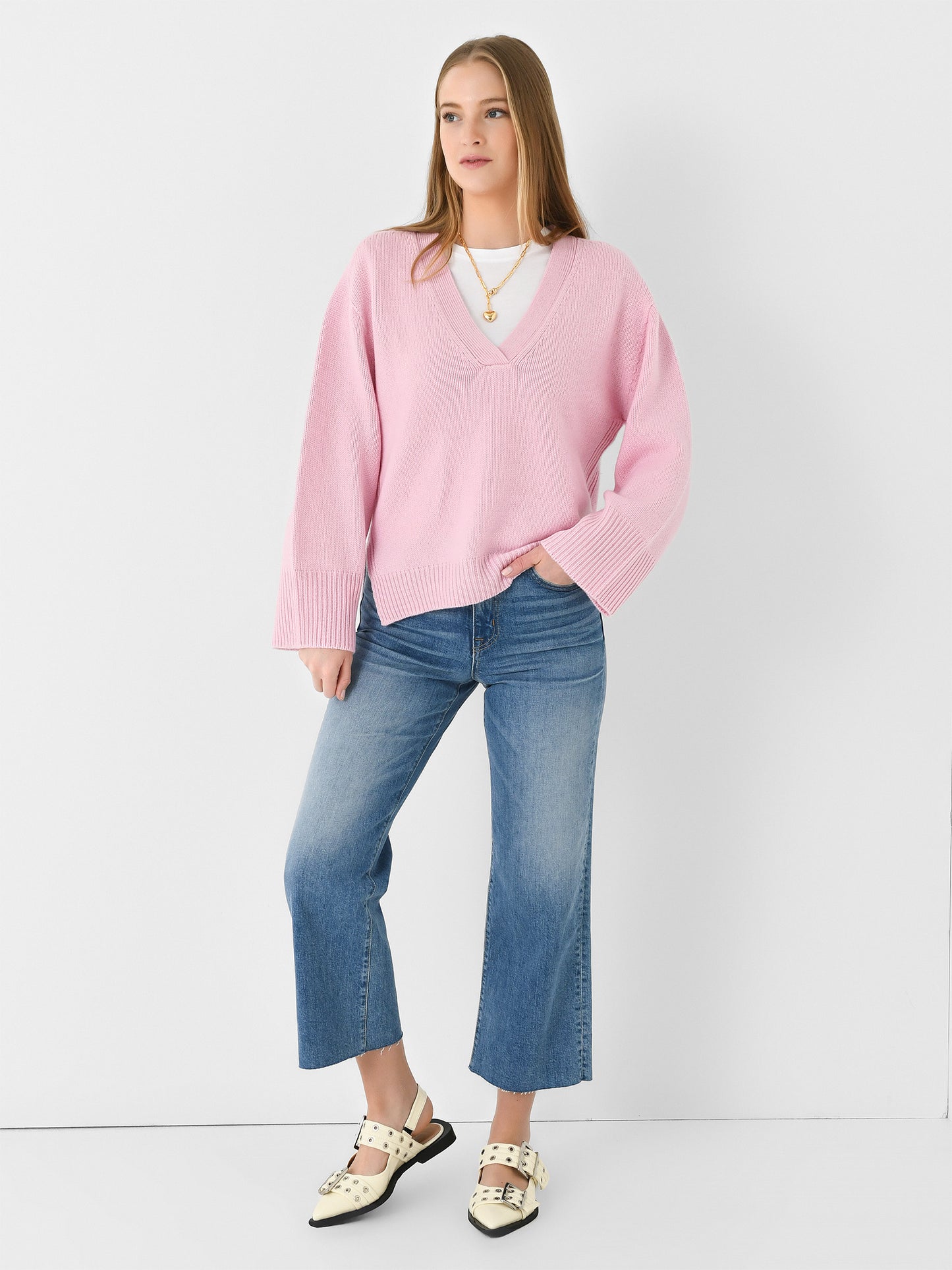 A slightly oversized v-neck sweater knitted from seamless cashmere with bell sleeves and a notched hem.