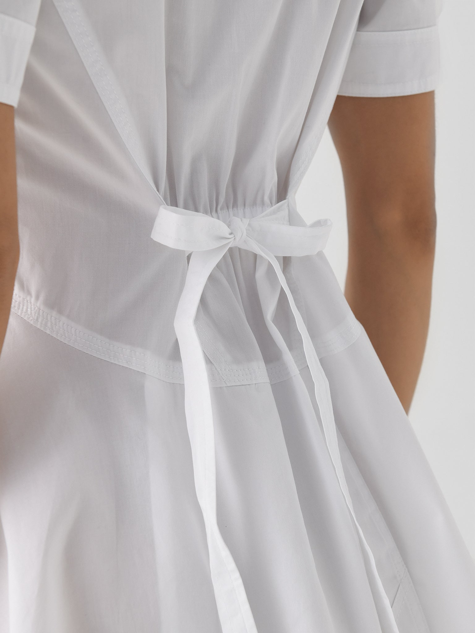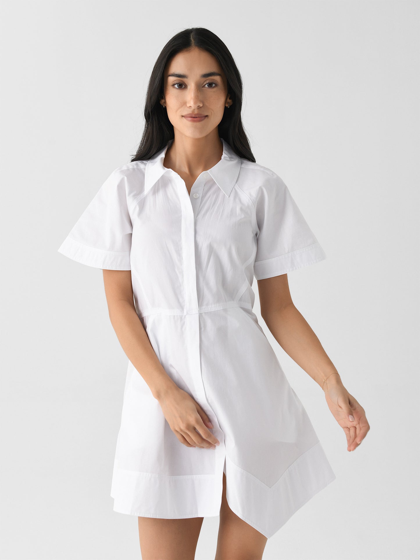 This airy cotton shirtdress features an asymmetrical hemline and versatile design that can be dressed up or down.