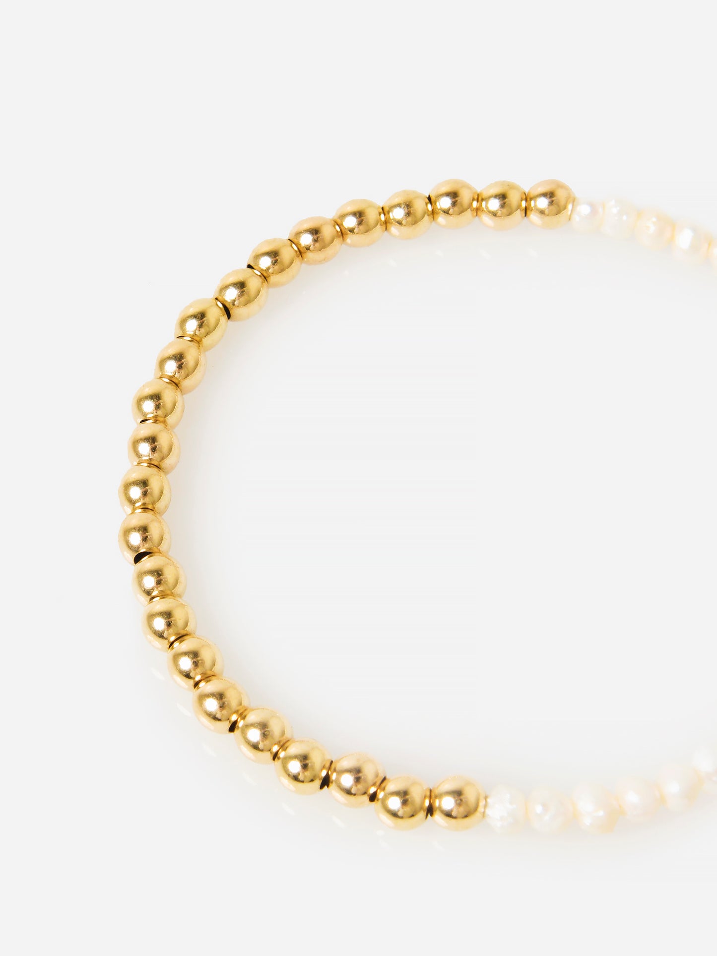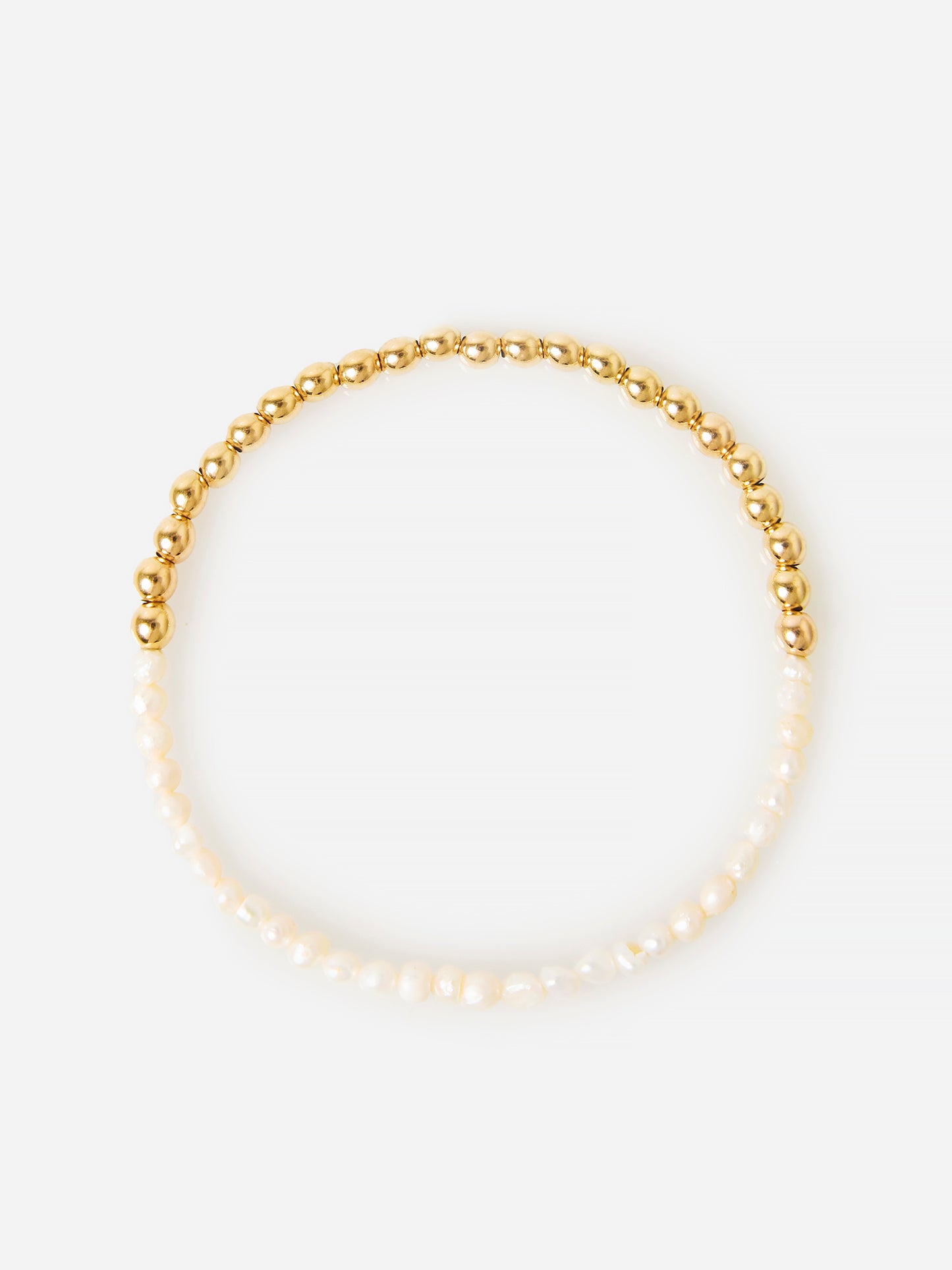 Stretch bracelet with alternating pearls and gold-filled beads.