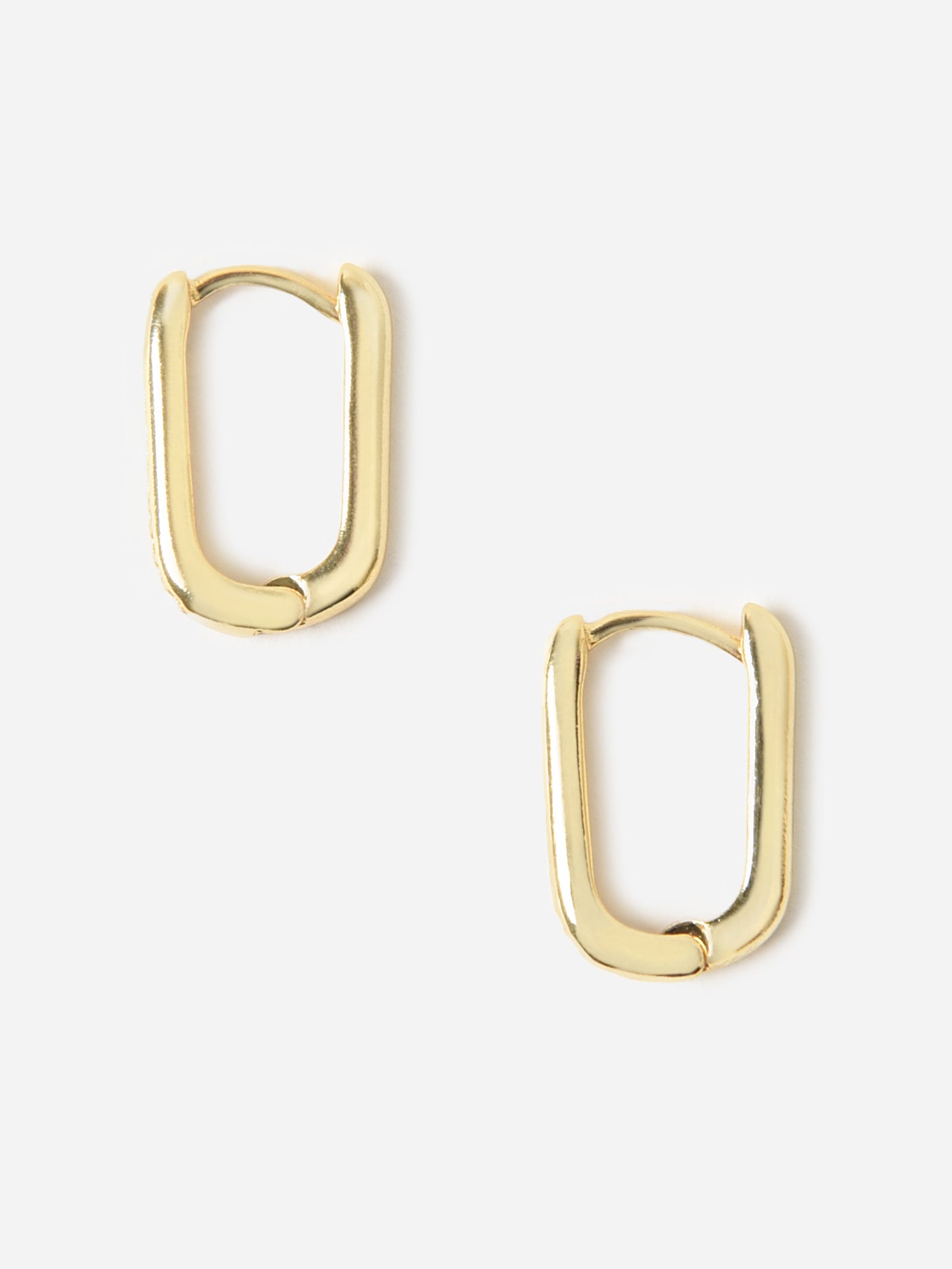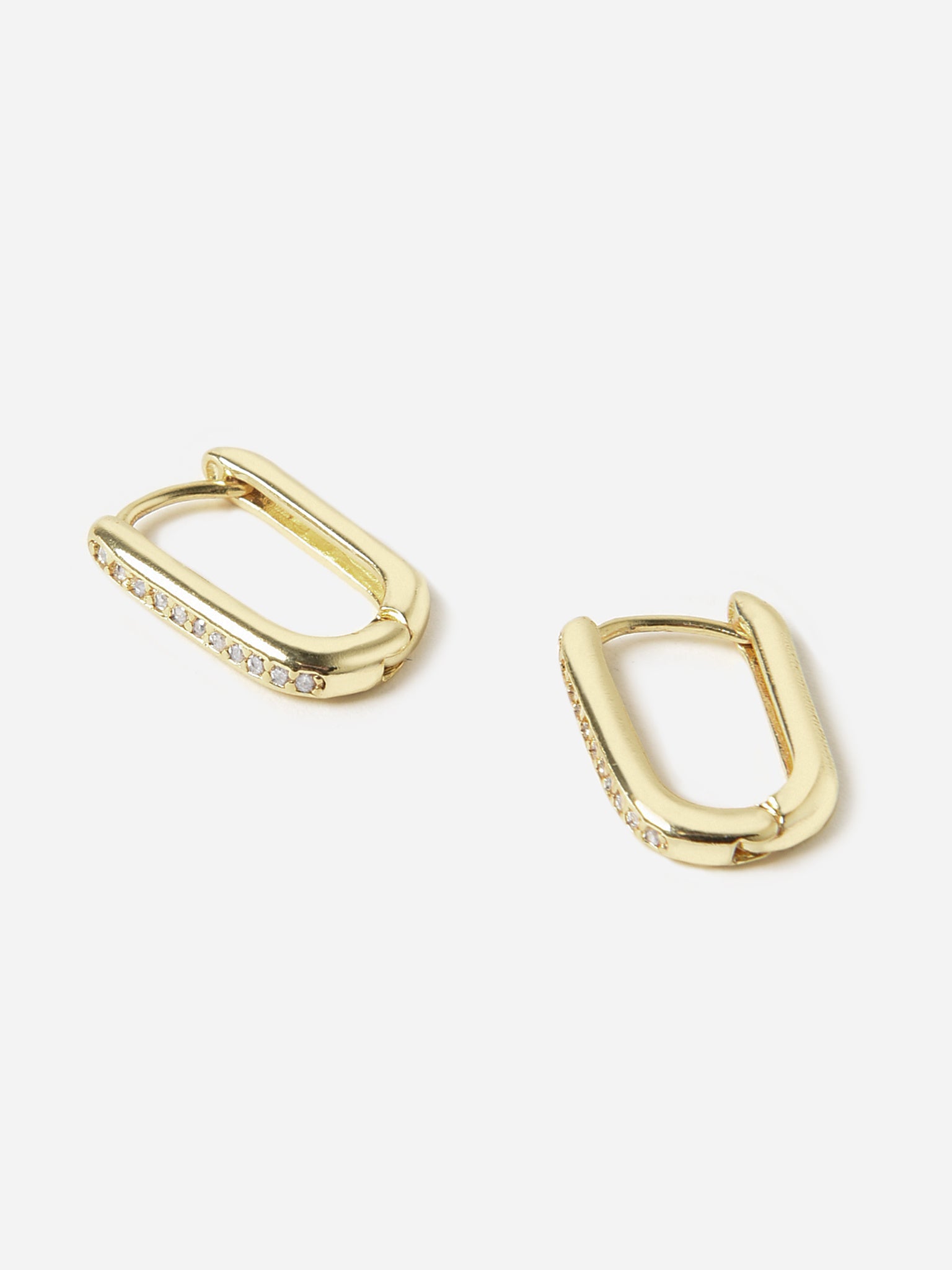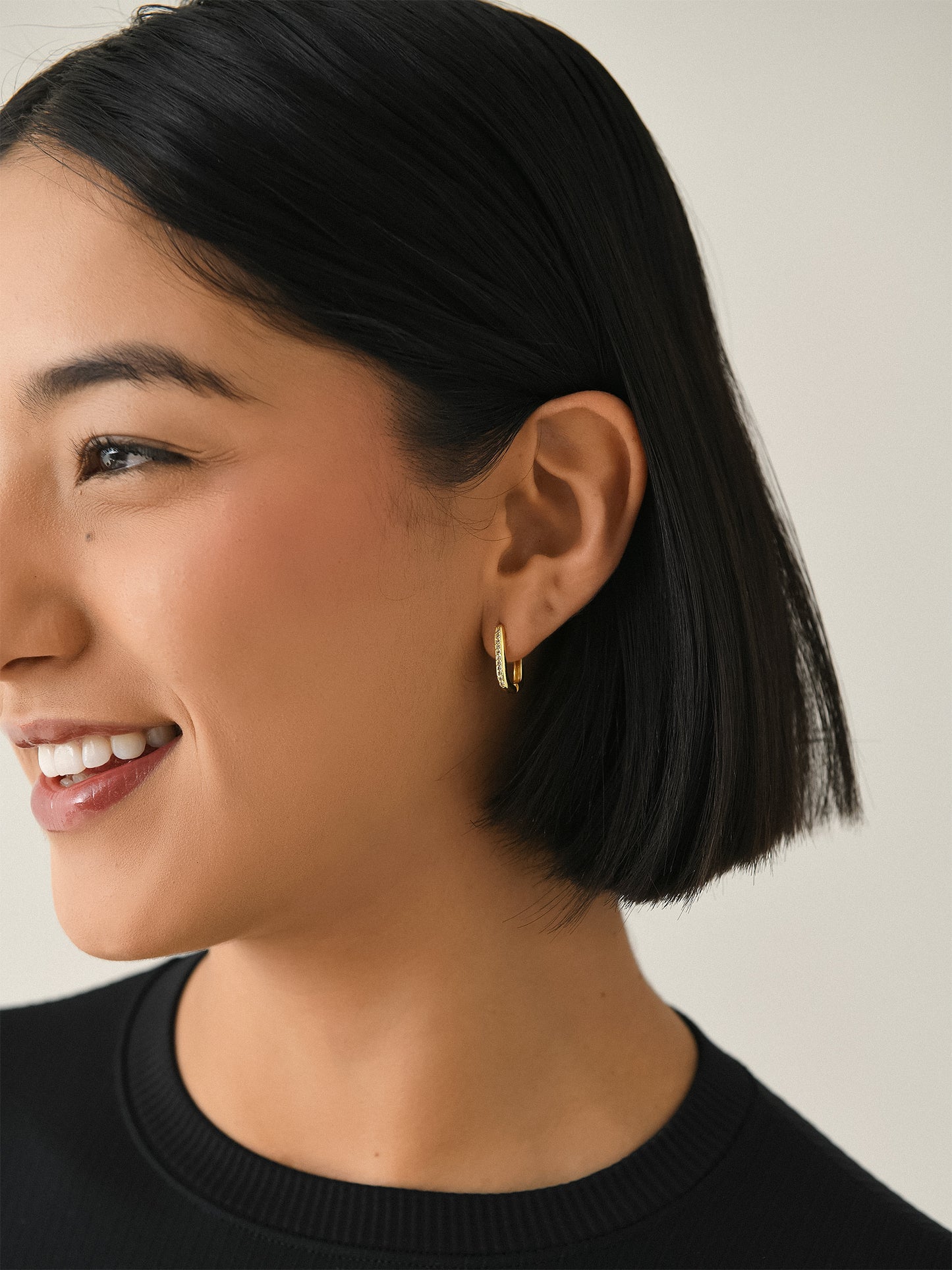 Rectangle-shaped huggie earrings with cubic zirconia pavé stones.
