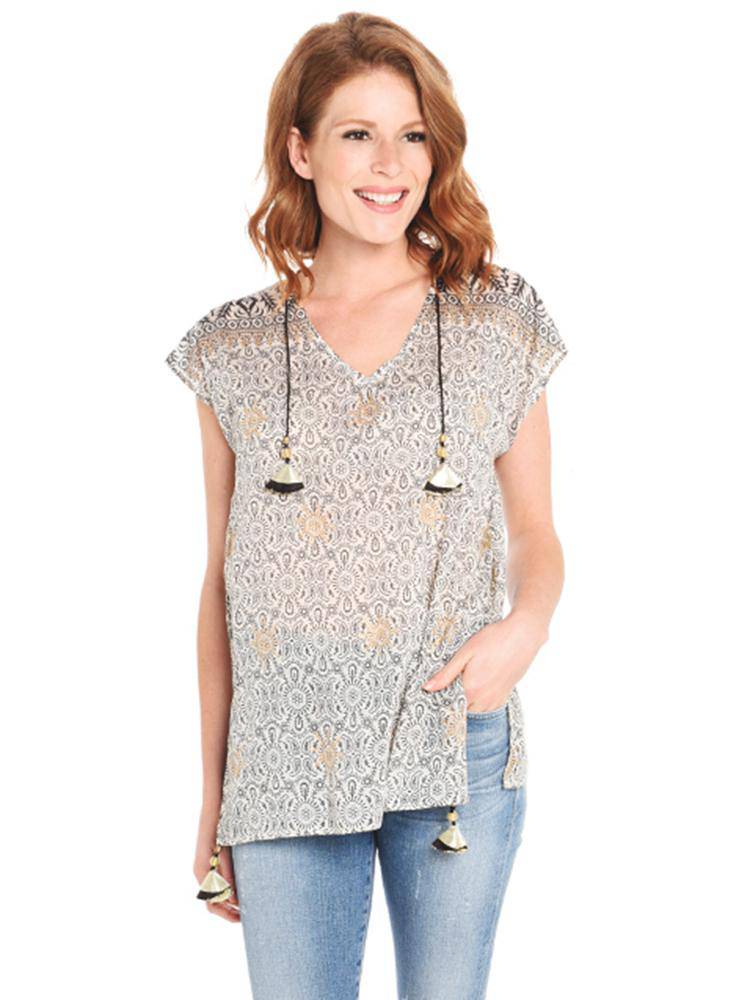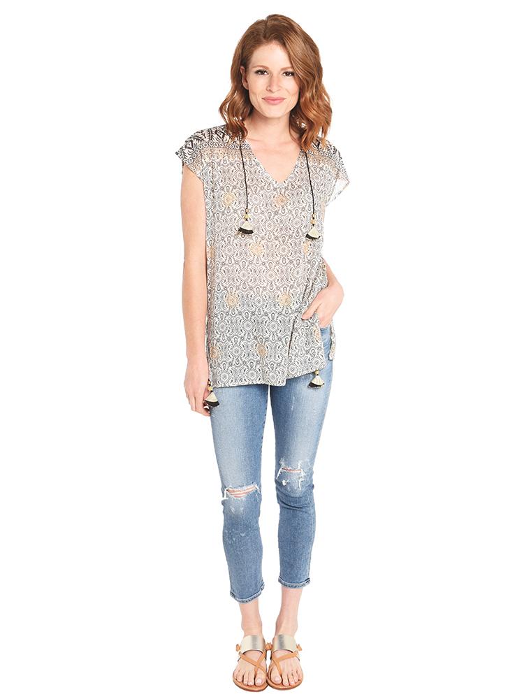 Pair the Alicia Bell Loose V-Neck Tunic Top with your go-to denim jeans or shorts for a comfy summer look.