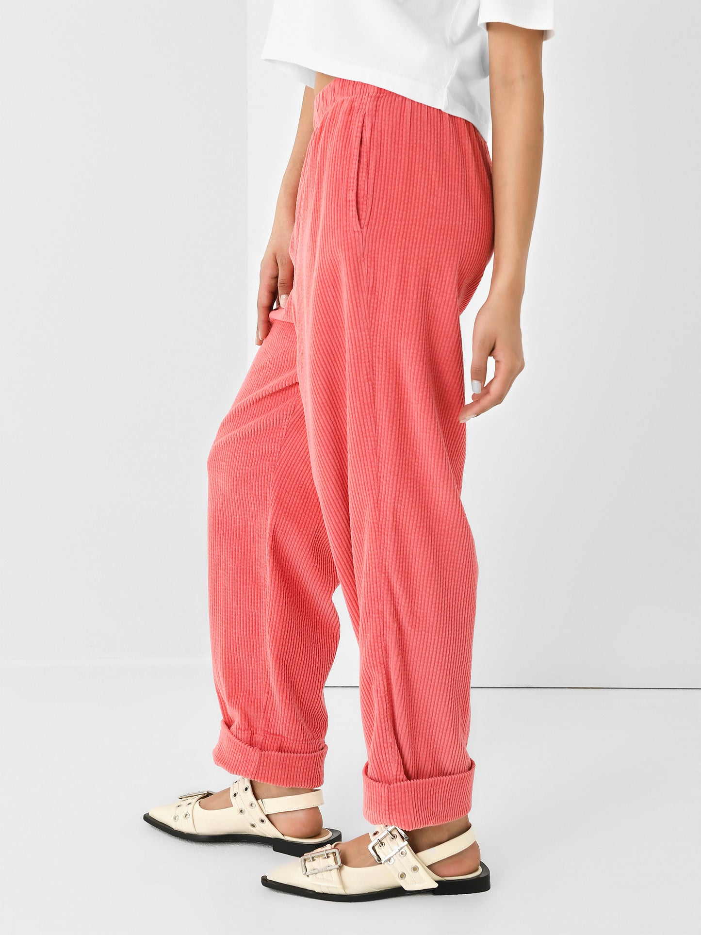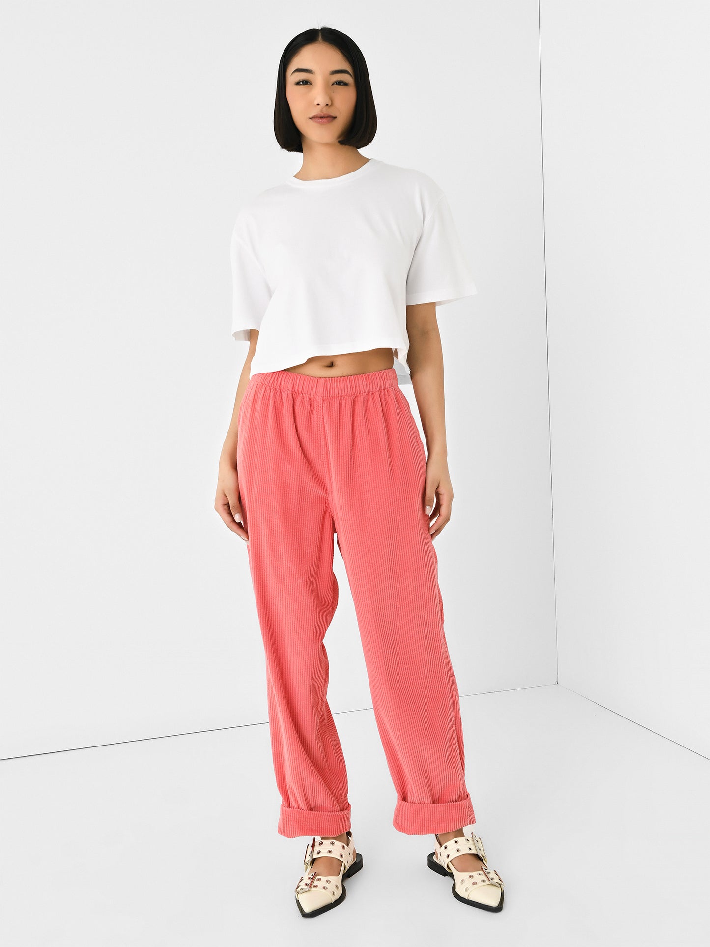 A straight-leg pull-on pant made from soft corduroy fabric.