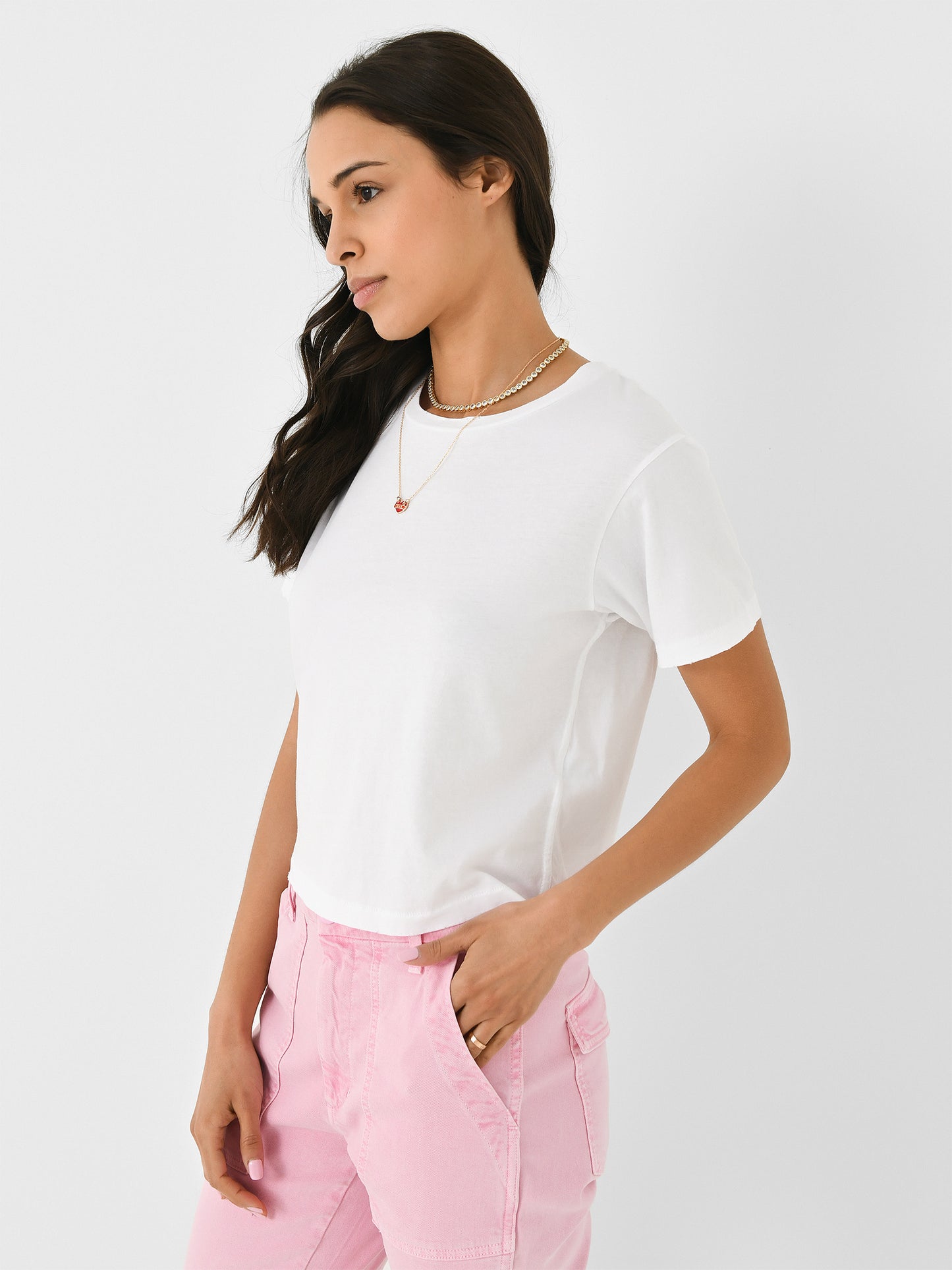 A boxy, cropped tee perfect to pair with high-waisted denim.