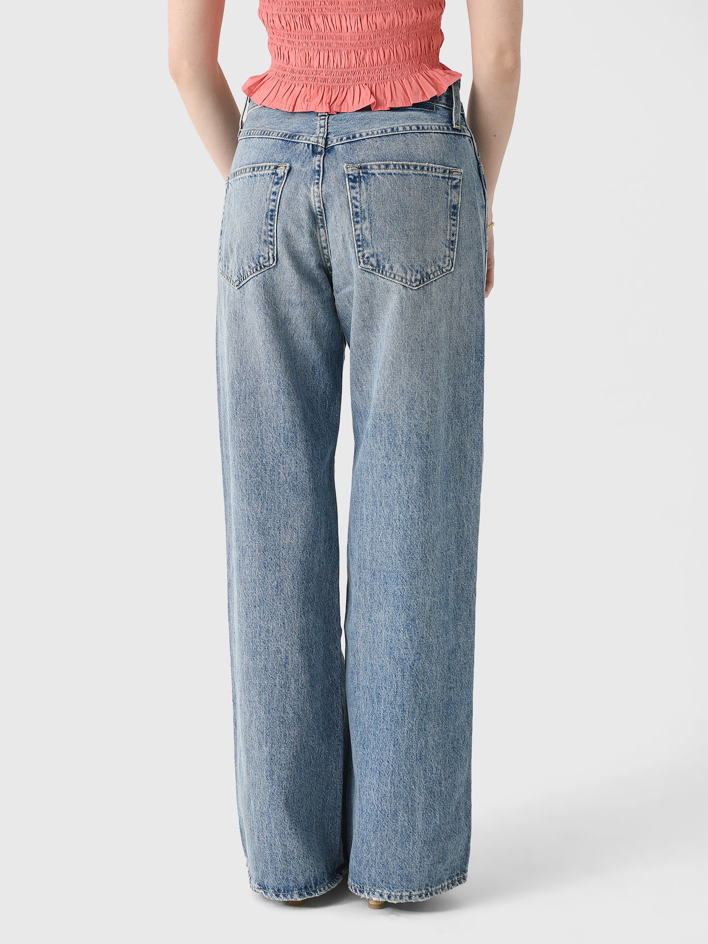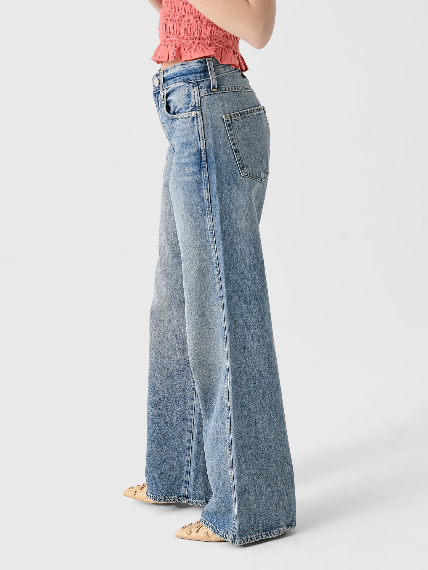 A best-selling wide-leg jean made from rigid denim and finished with a high-rise and full-length inseam.