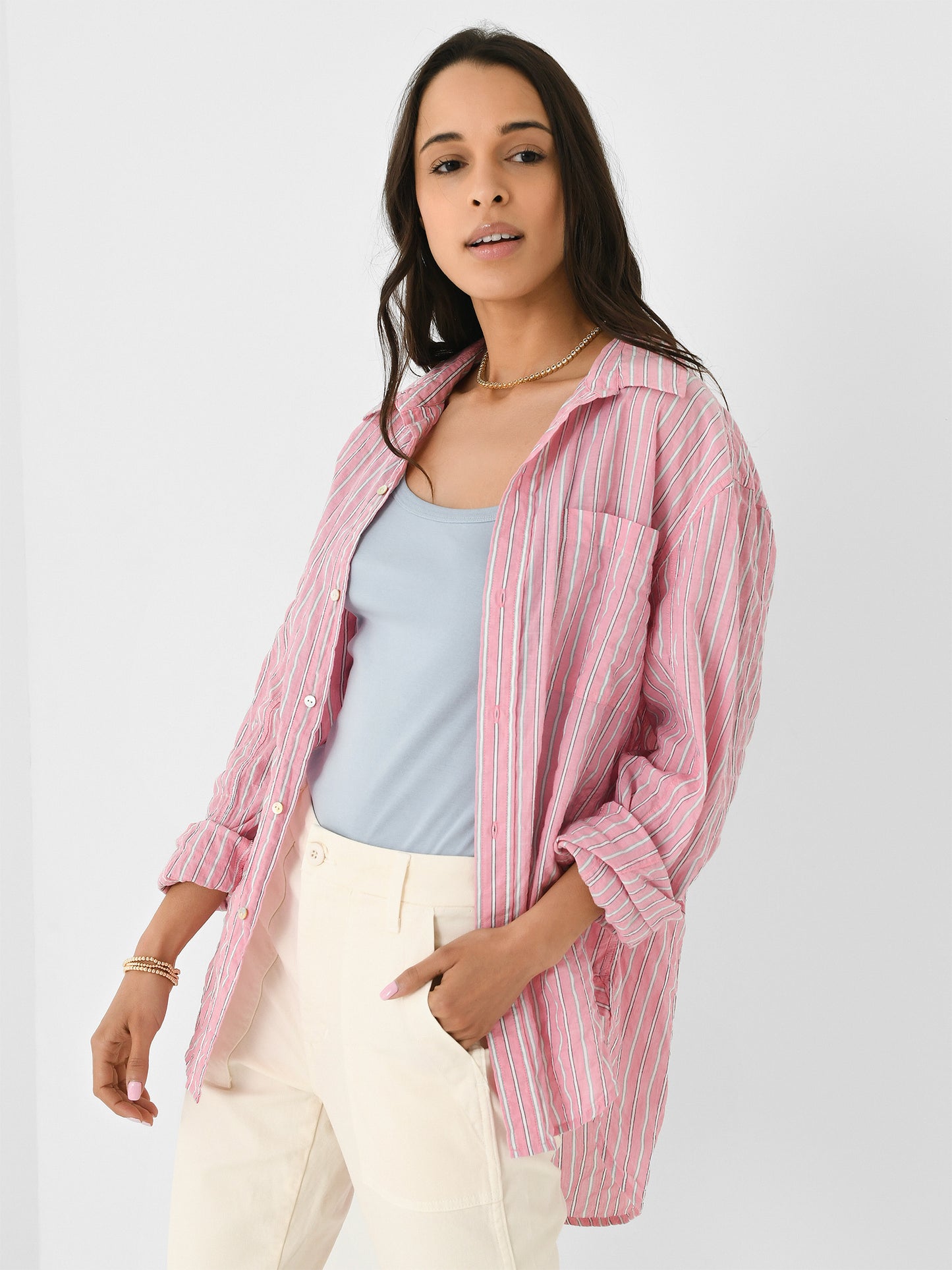 An oversized collared shirt crafted from stonewashed cotton poplin.