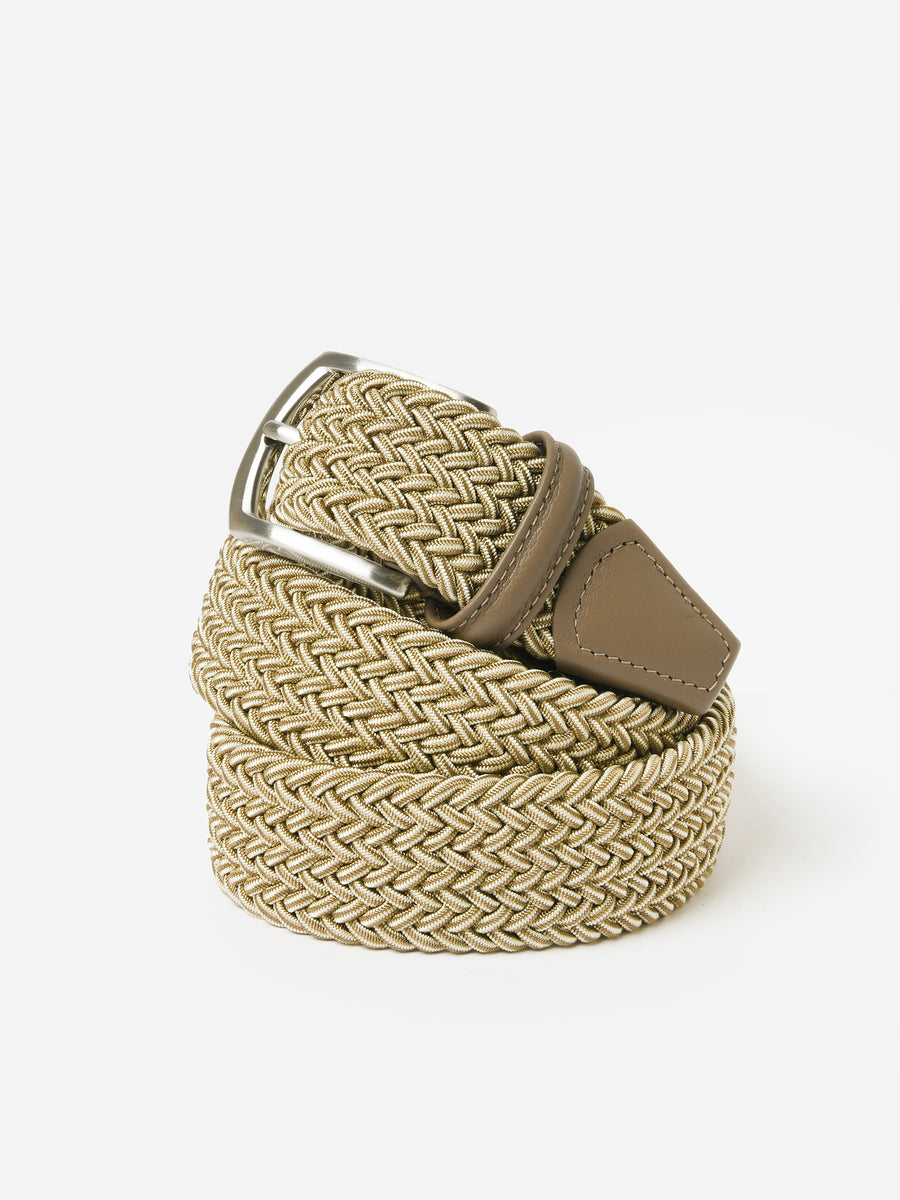 Made from a durable, stretchy woven material, this belt provides a perfect fit that moves with you. The sleek silver buckle and leather trim add a polished finishing touch to any look.