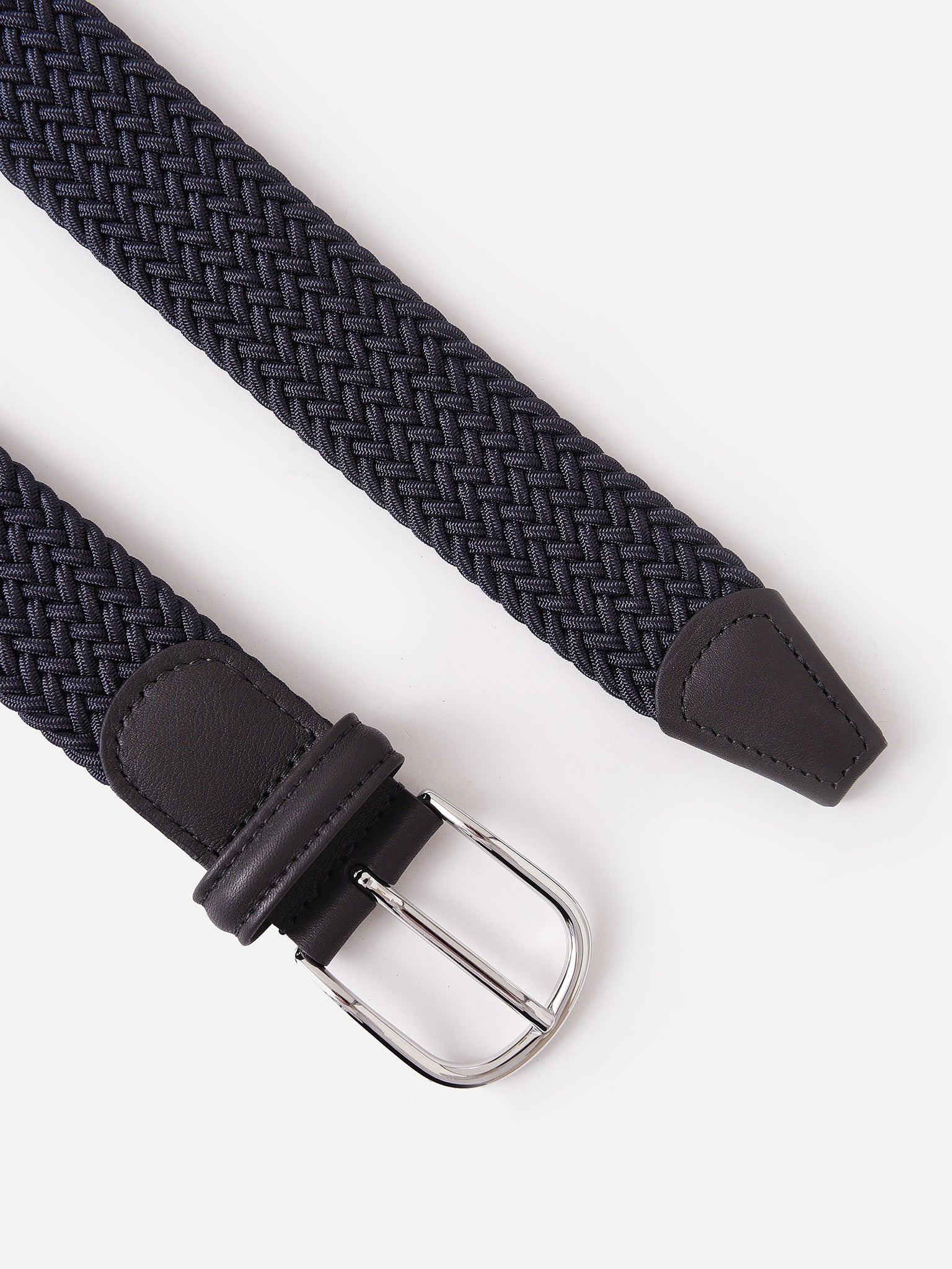 Italian hand-woven belt with leather trim details.