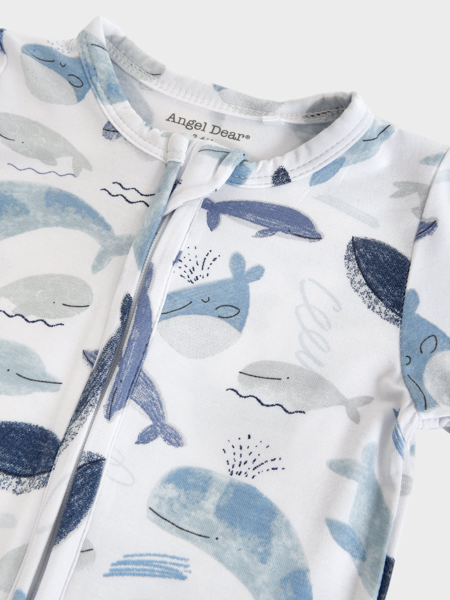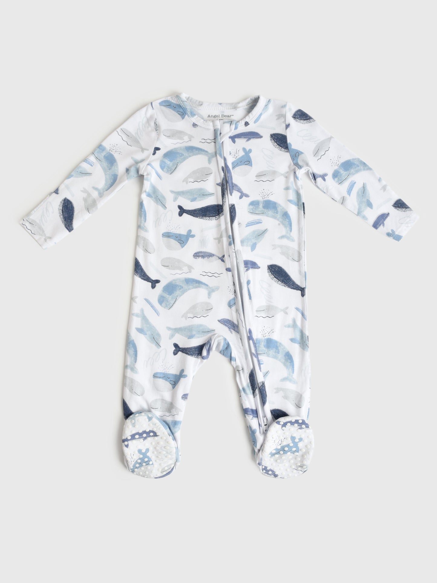 Angel Dear Baby Boys' Blue Whales 2-Way Zipper Footie