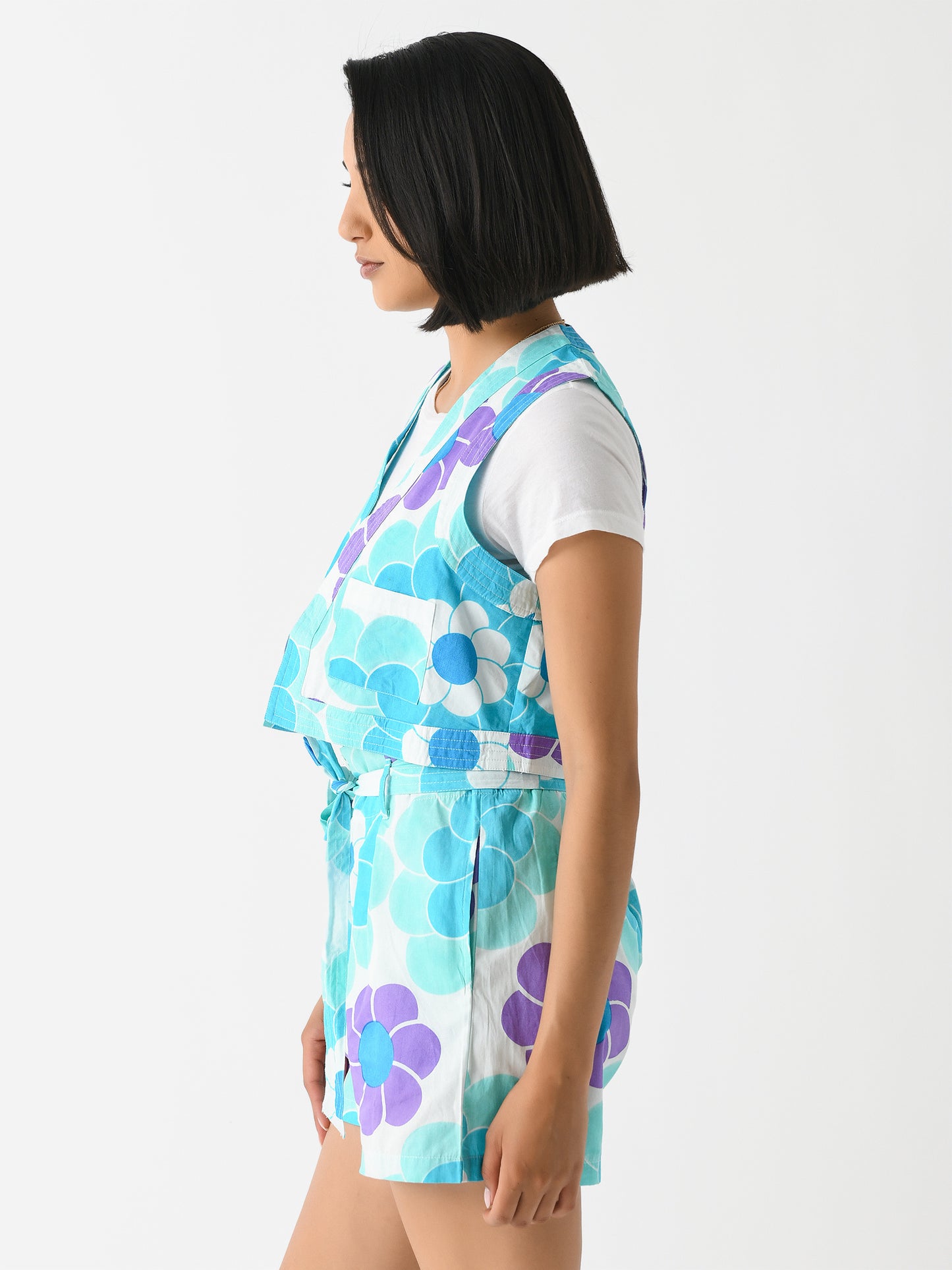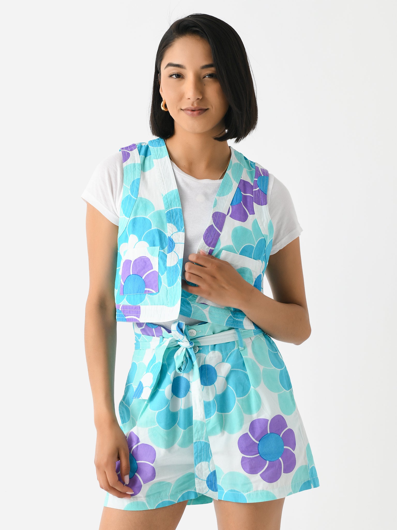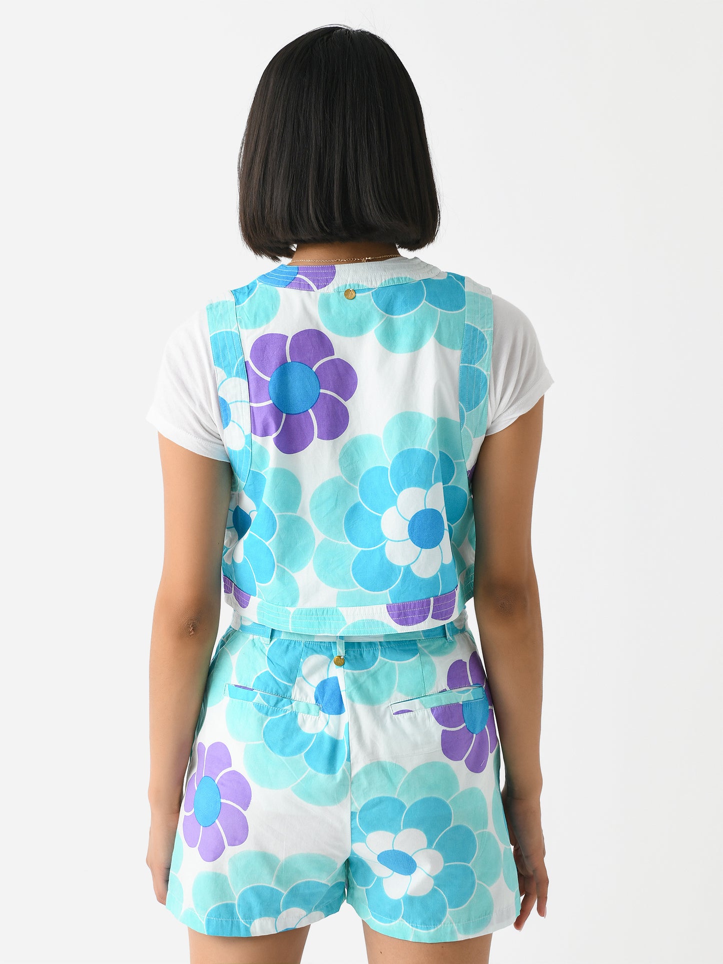 A slightly cropped vest made from lightweight poplin with a sixties-inspired print.