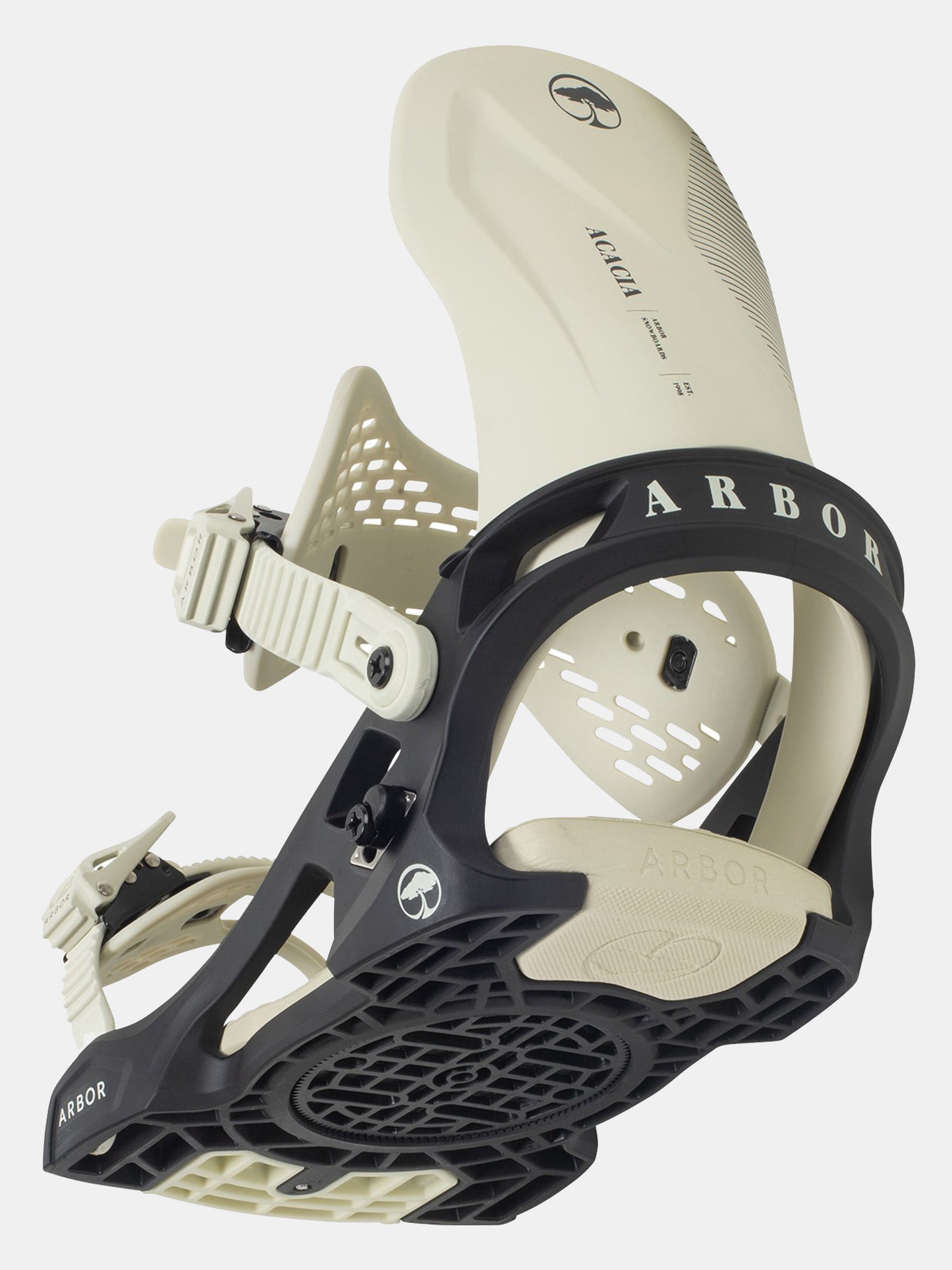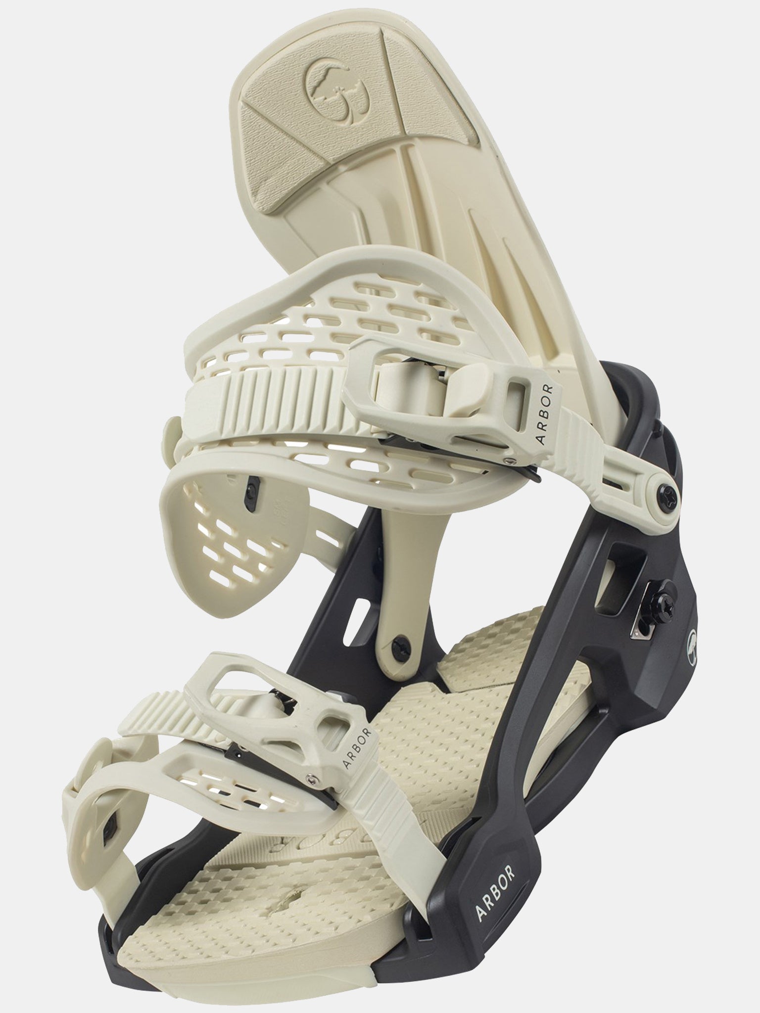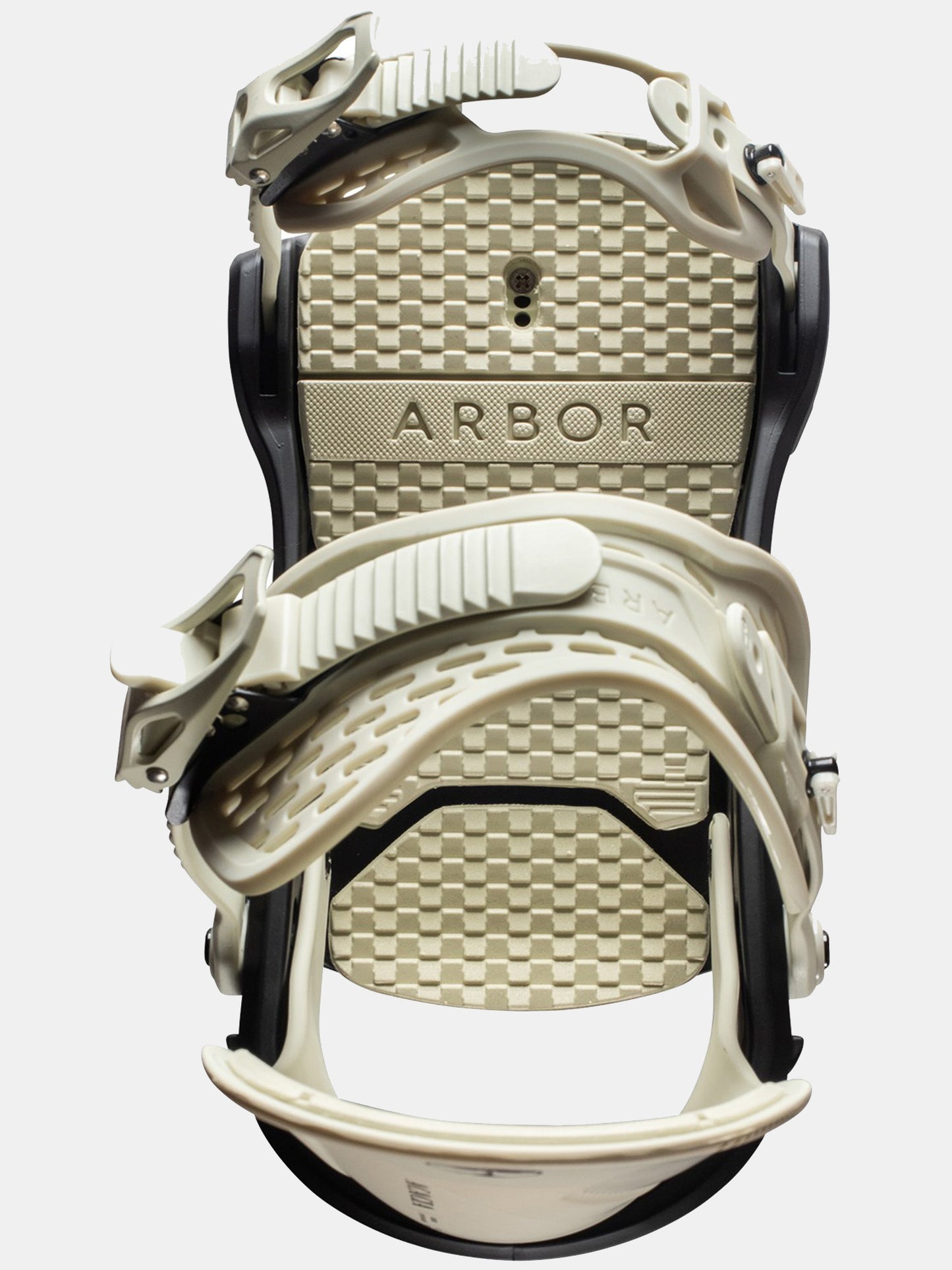 Bow-Strap Adjuster – Arbor's patented "Bow-Strap" adjuster and ladder strap swings out of the way quickly and easily, making binding entry a simple, user-friendly experience. The pre-curved strap steers clear of your boot while maintaining form and durability in even the coldest conditions.