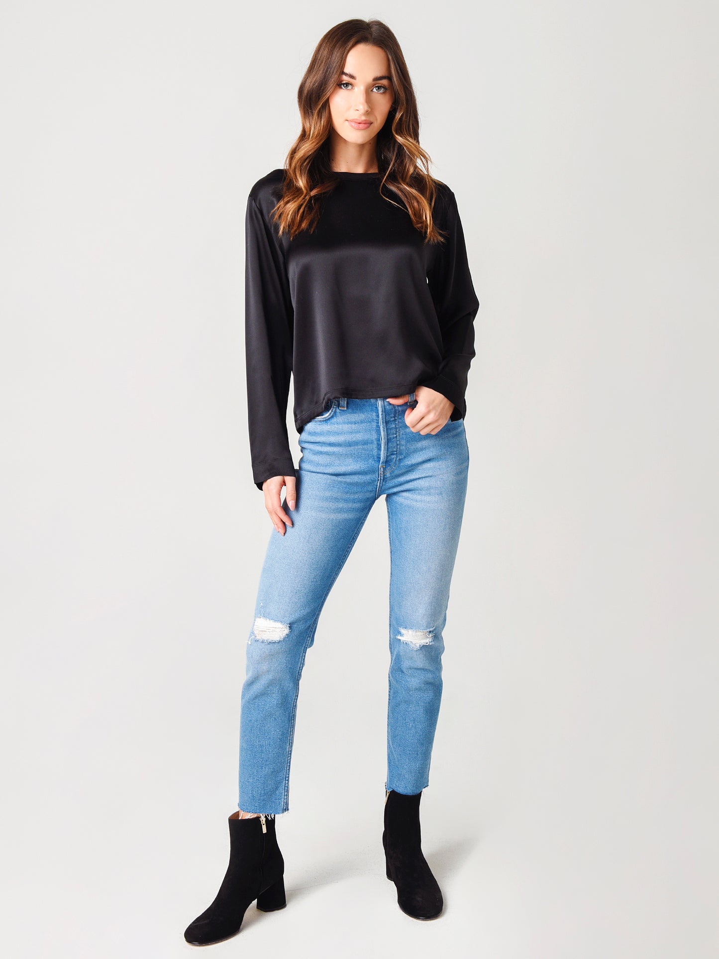 The ATM Silk Charmeuse Long Sleeve Boy Tee is an essential upgrade that your wardrobe needs this season.