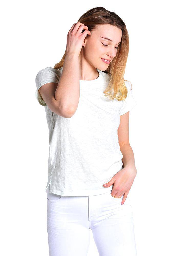 Keep a casual look in the ATM Women's Slub Jersey Schoolboy Crew Neck Tee.