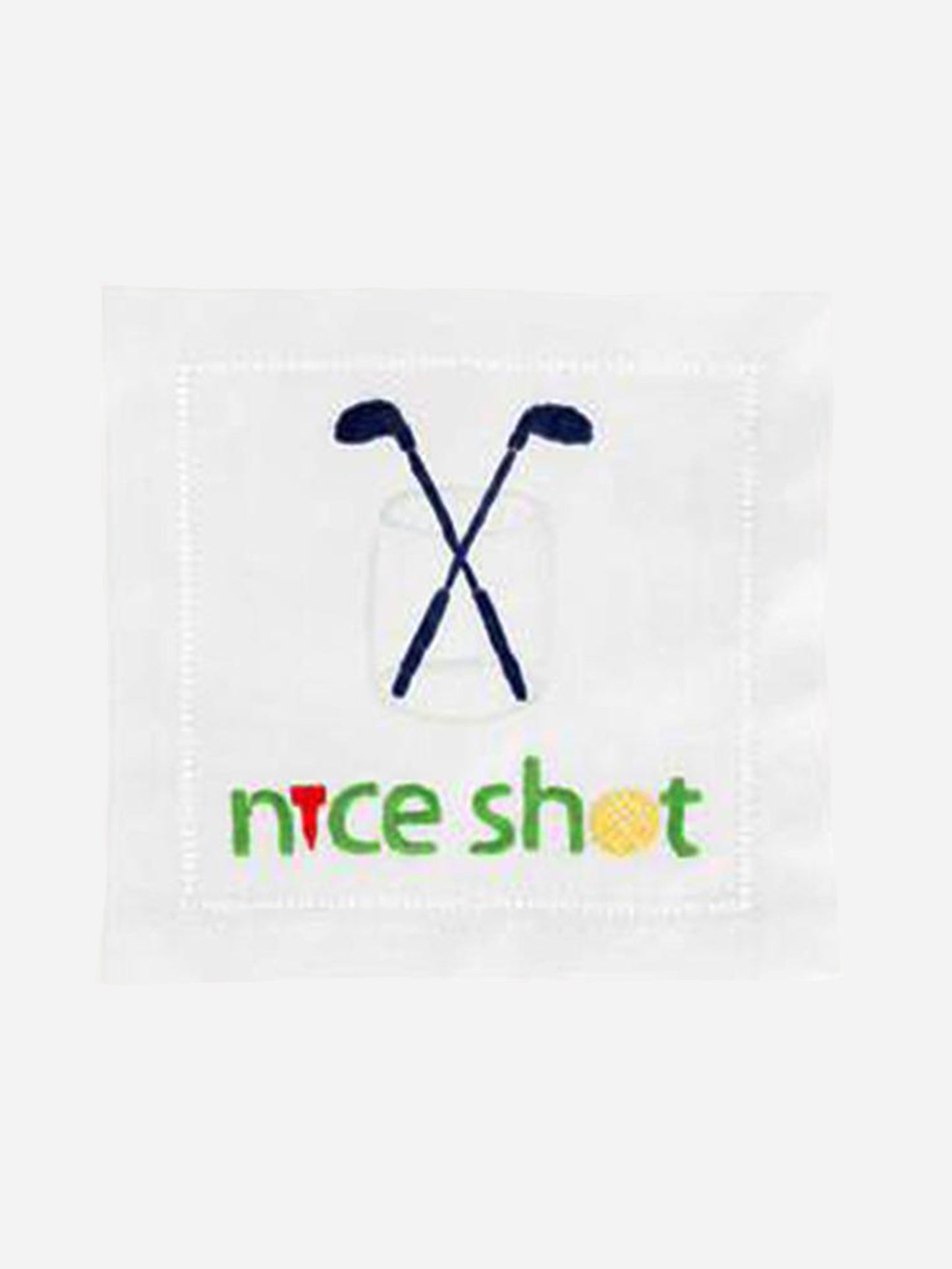 Set of four linen cocktail napkins with a golf-inspired motif.