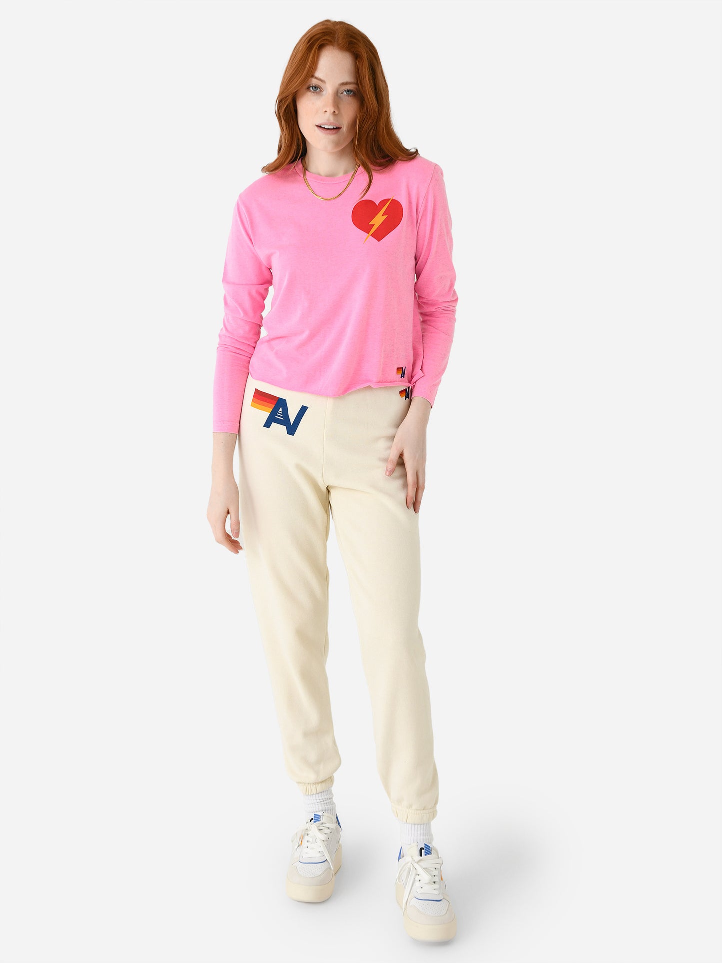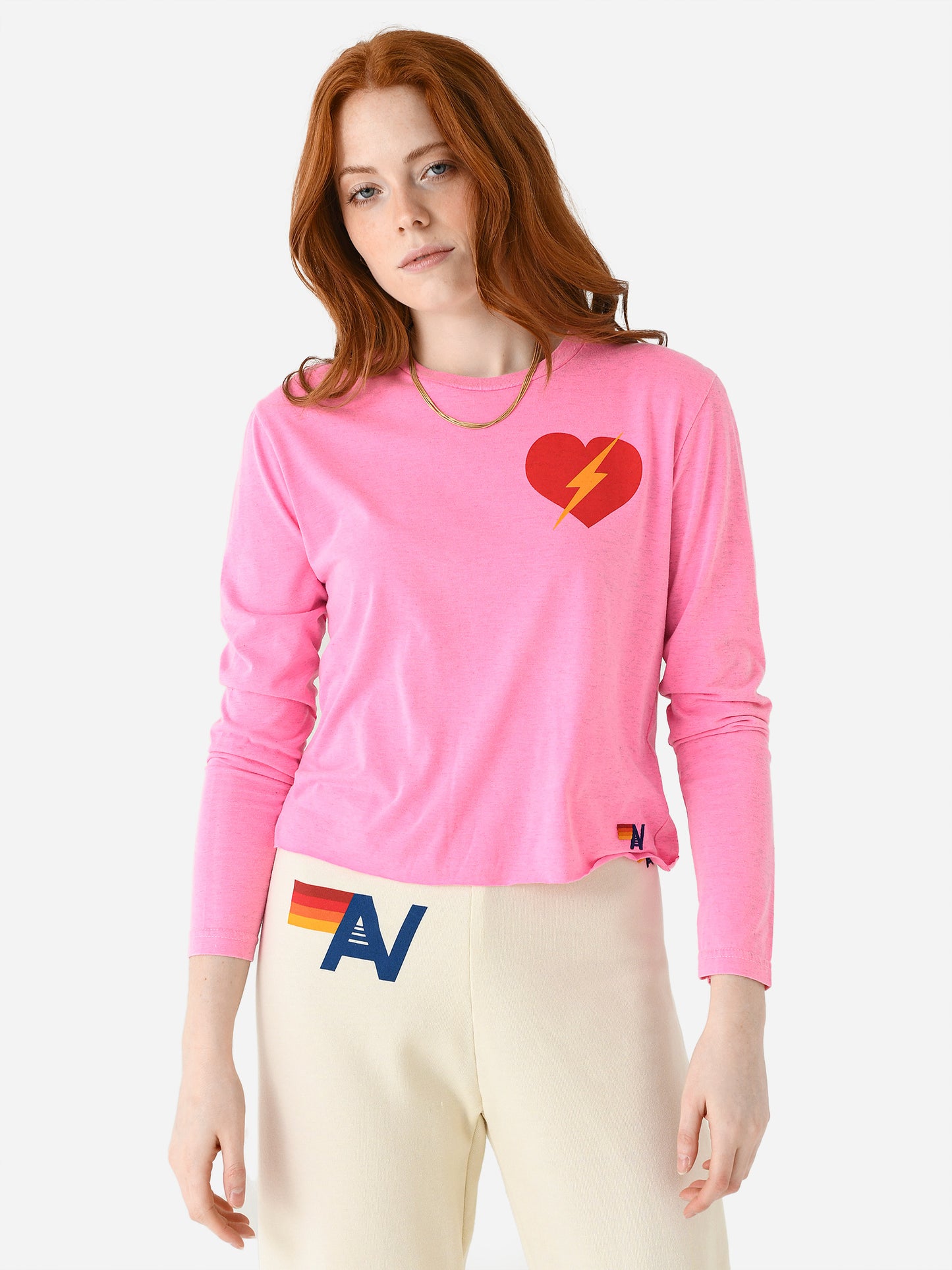 Aviator Nation Women's Bolt Heart Long Sleeve Boyfriend Tee