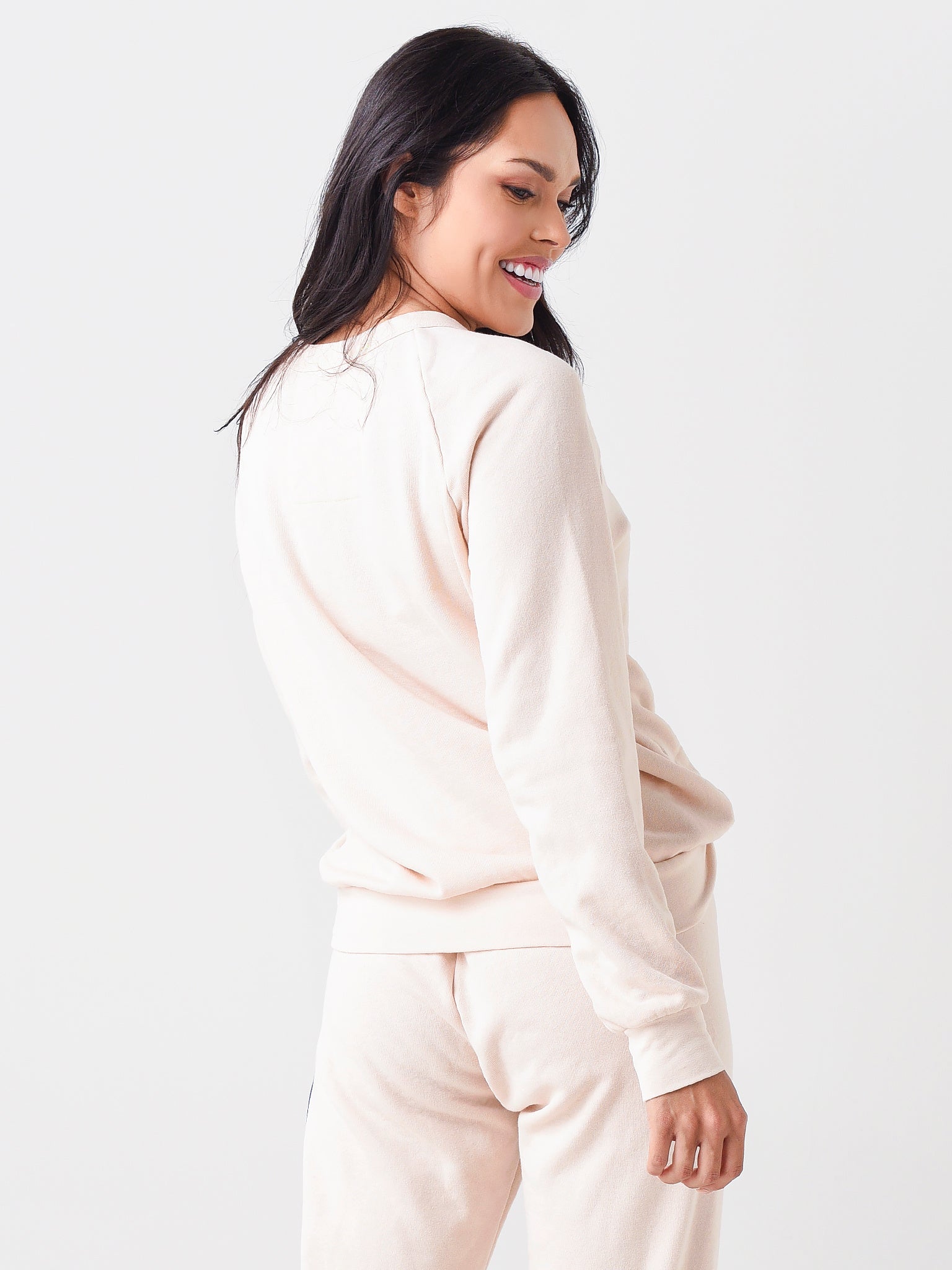 - Model is wearing size Small sweatshirt.