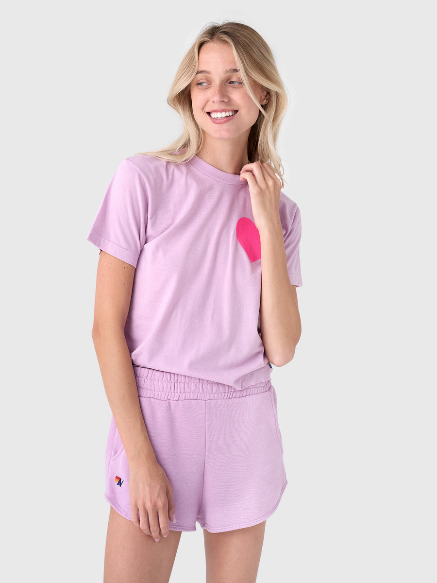 This vintage-inspired tee is made from a soft fabric blend with a heart graphic and a raw hem.