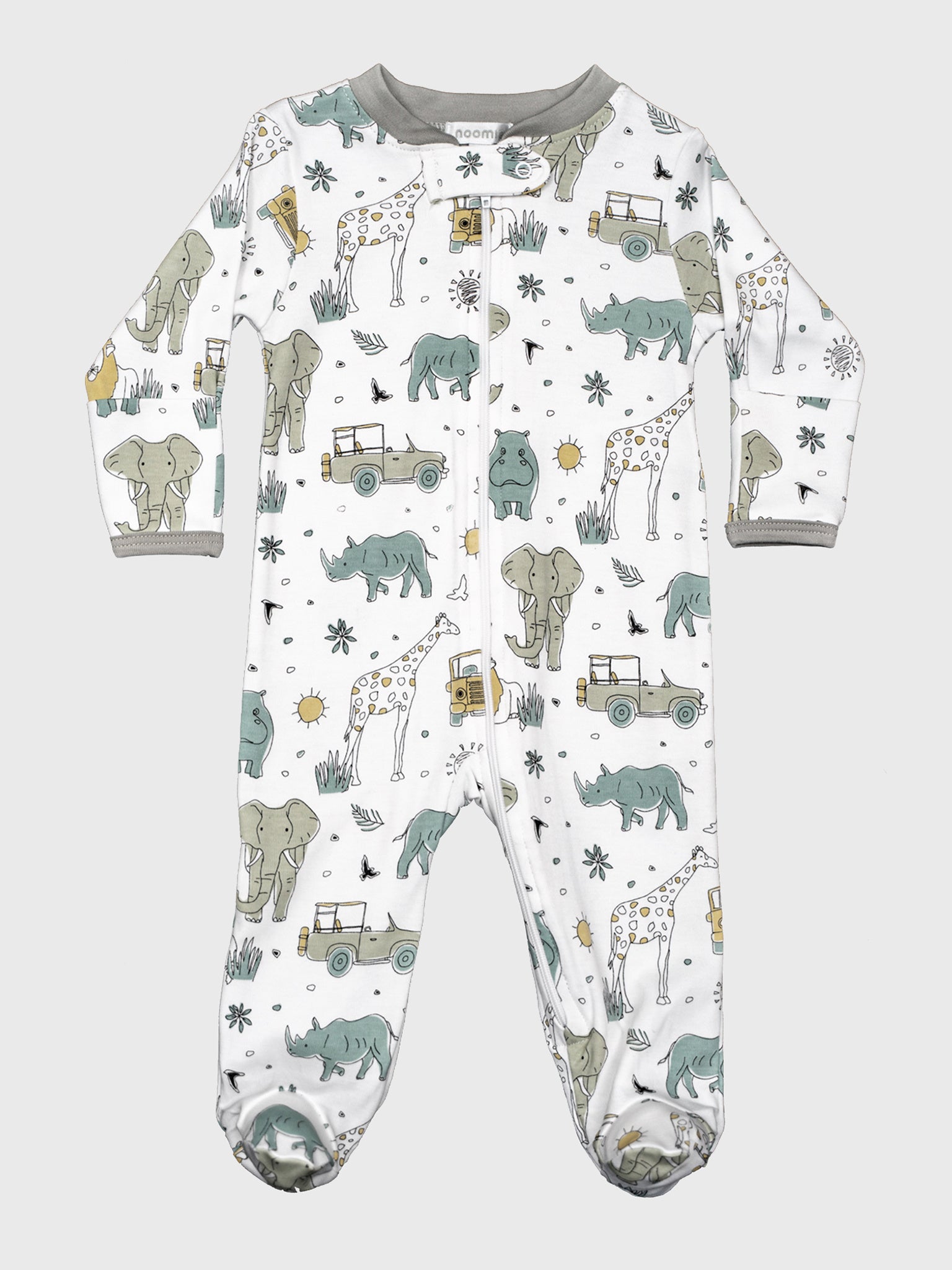 Baby Noomie Baby Boys' Safari Zipper Footie Onesie
