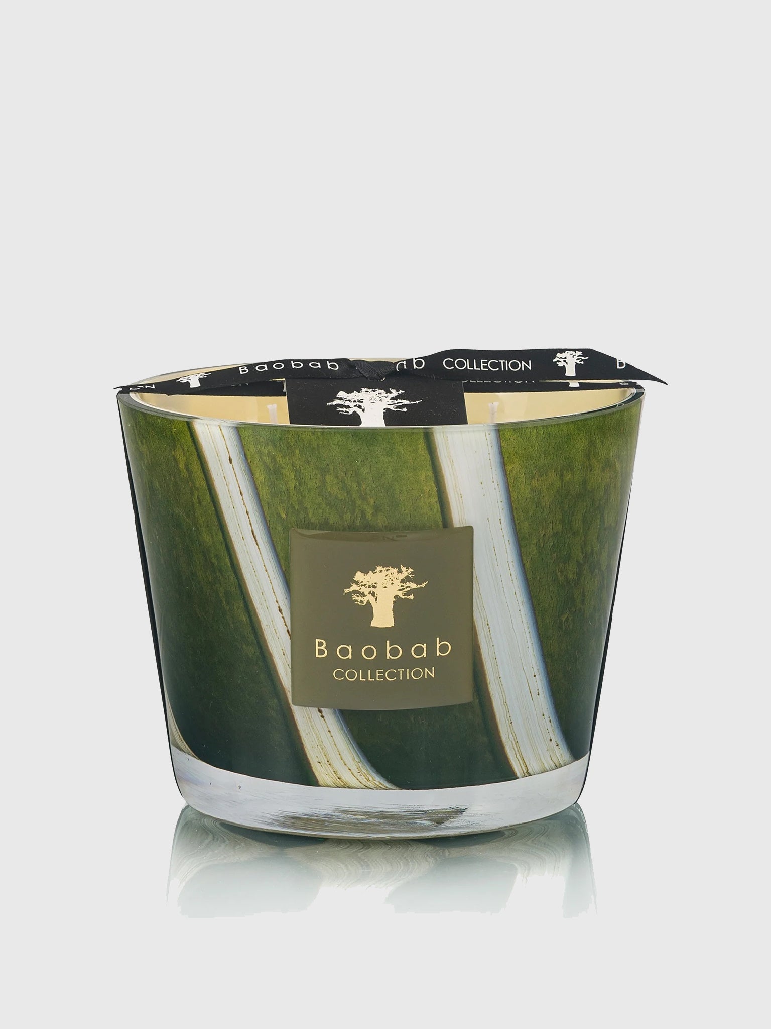 A four-wick candle poured into a beautiful hand-blown glass vessel.