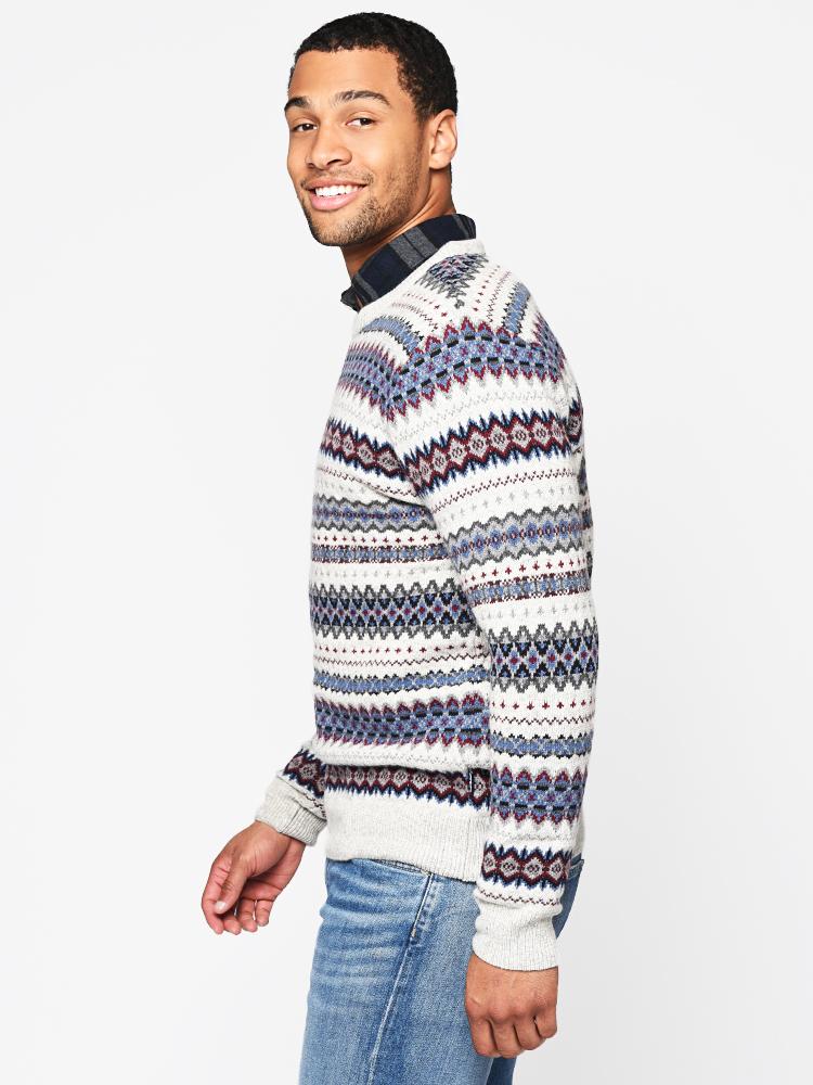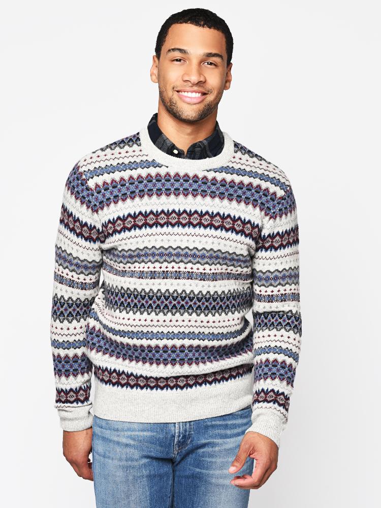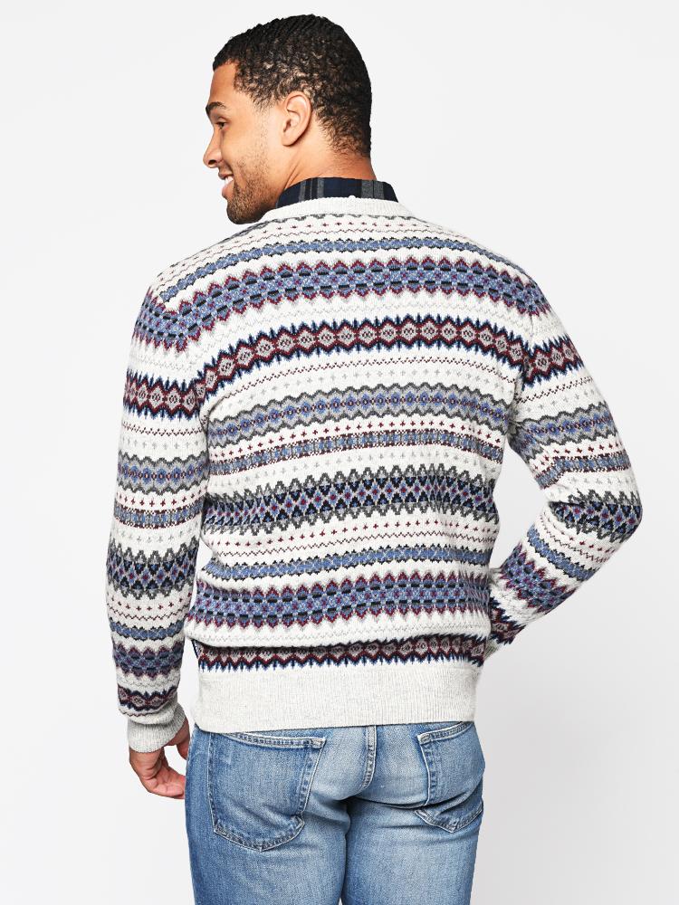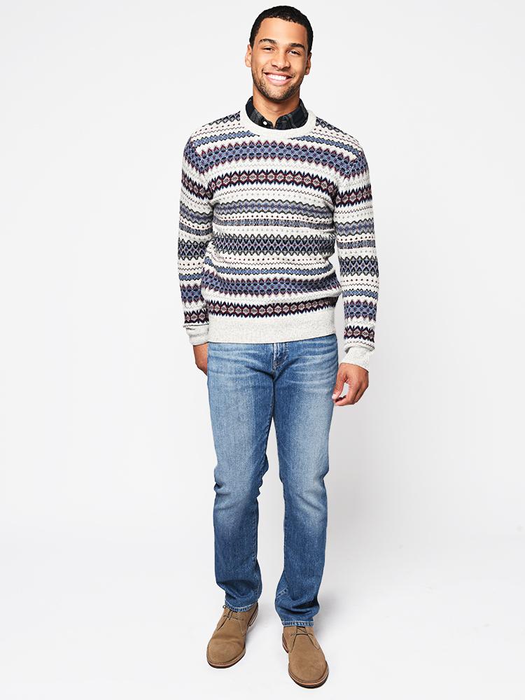 Styled with Barbor shirt style # MSH4553, Citizens of Humanity jeanstyle # 6108B-1147 and Trask shoe style # 30-1946. Model is wearing size Medium pullover and size 32 jean.