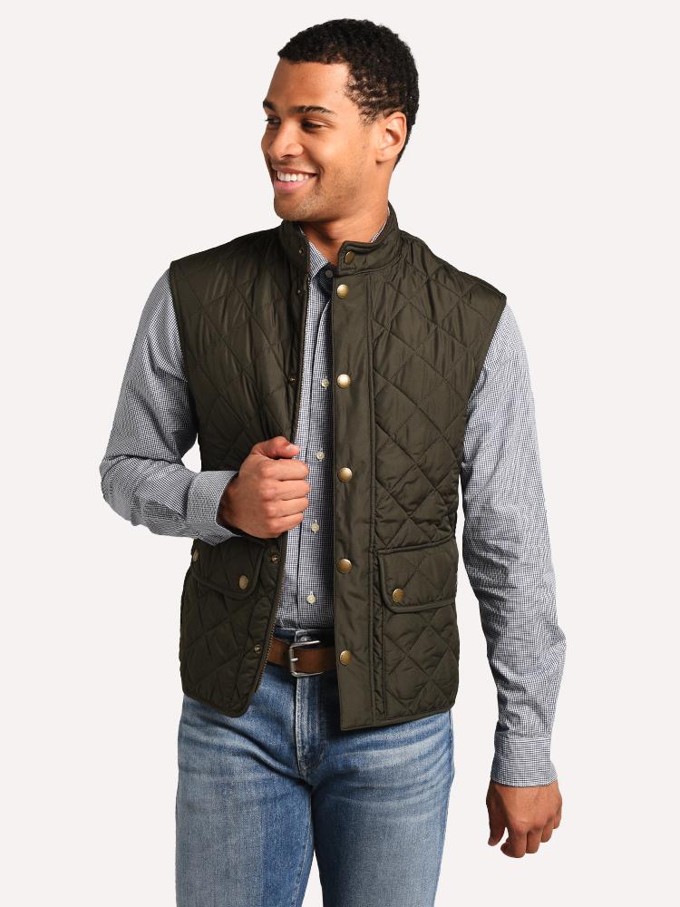 This essential gilet is constructed with Barbour's signature diamond-quilted outer and a stand collar trimmed with needlecord at the inside for a soft feel. Cut to a roomy fit, it's detailed with two stud-close patch pockets and a two-way front zip with a studded storm guard. A Barbour-branded patch at the back neck adds an authentic finishing touch.