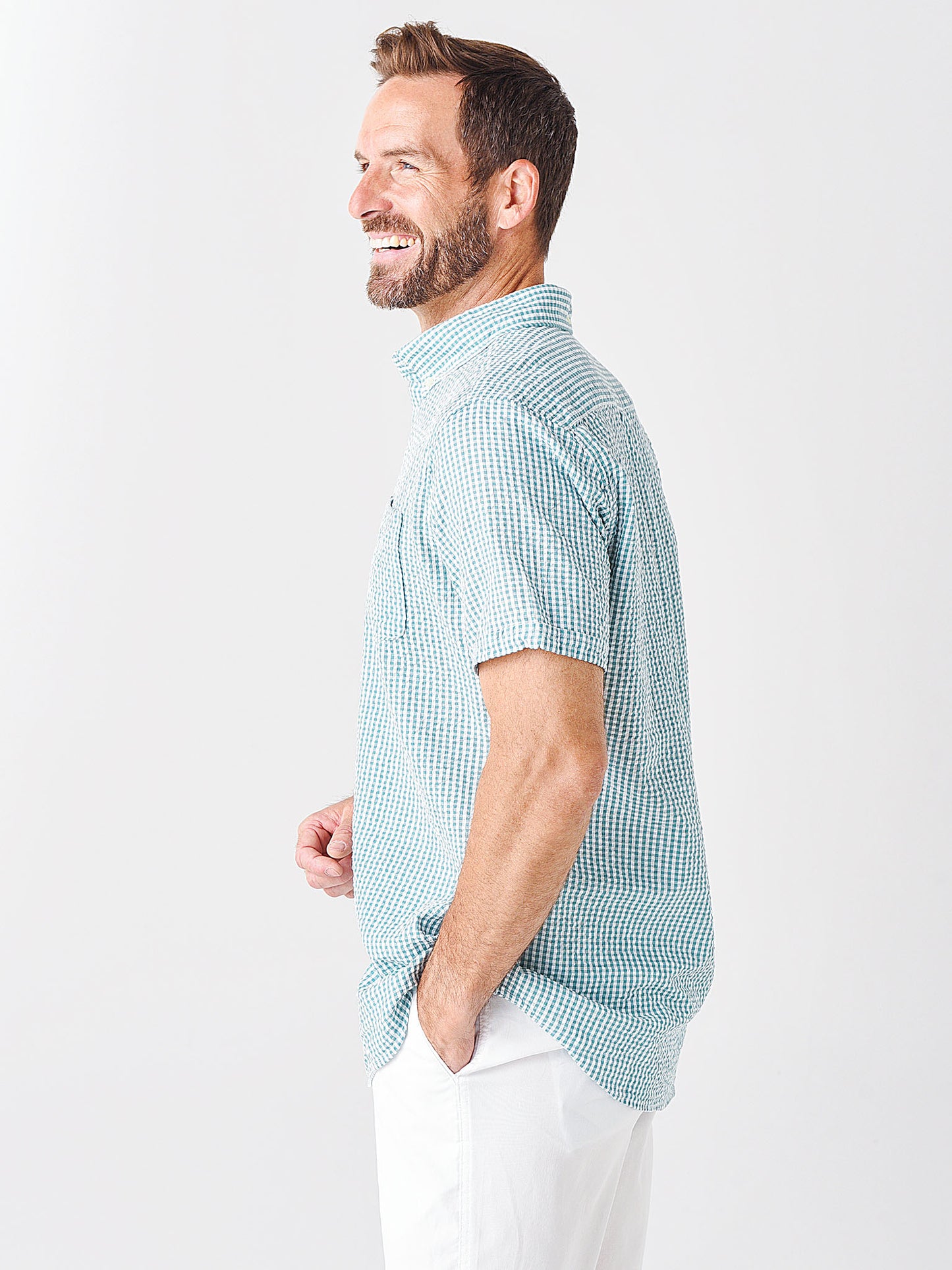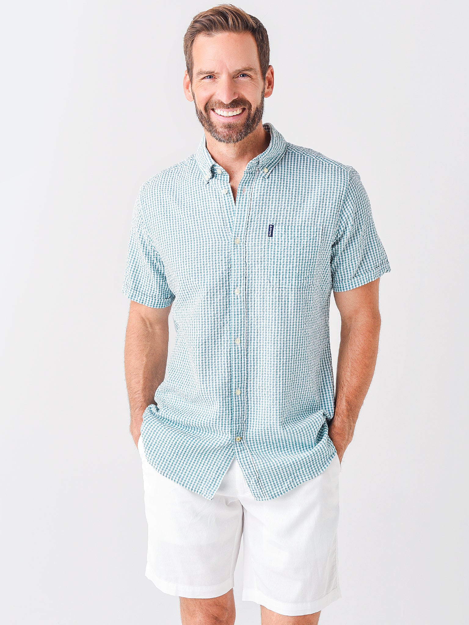 Men's Seersucker 8 Short-Sleeve Tailored Shirt
