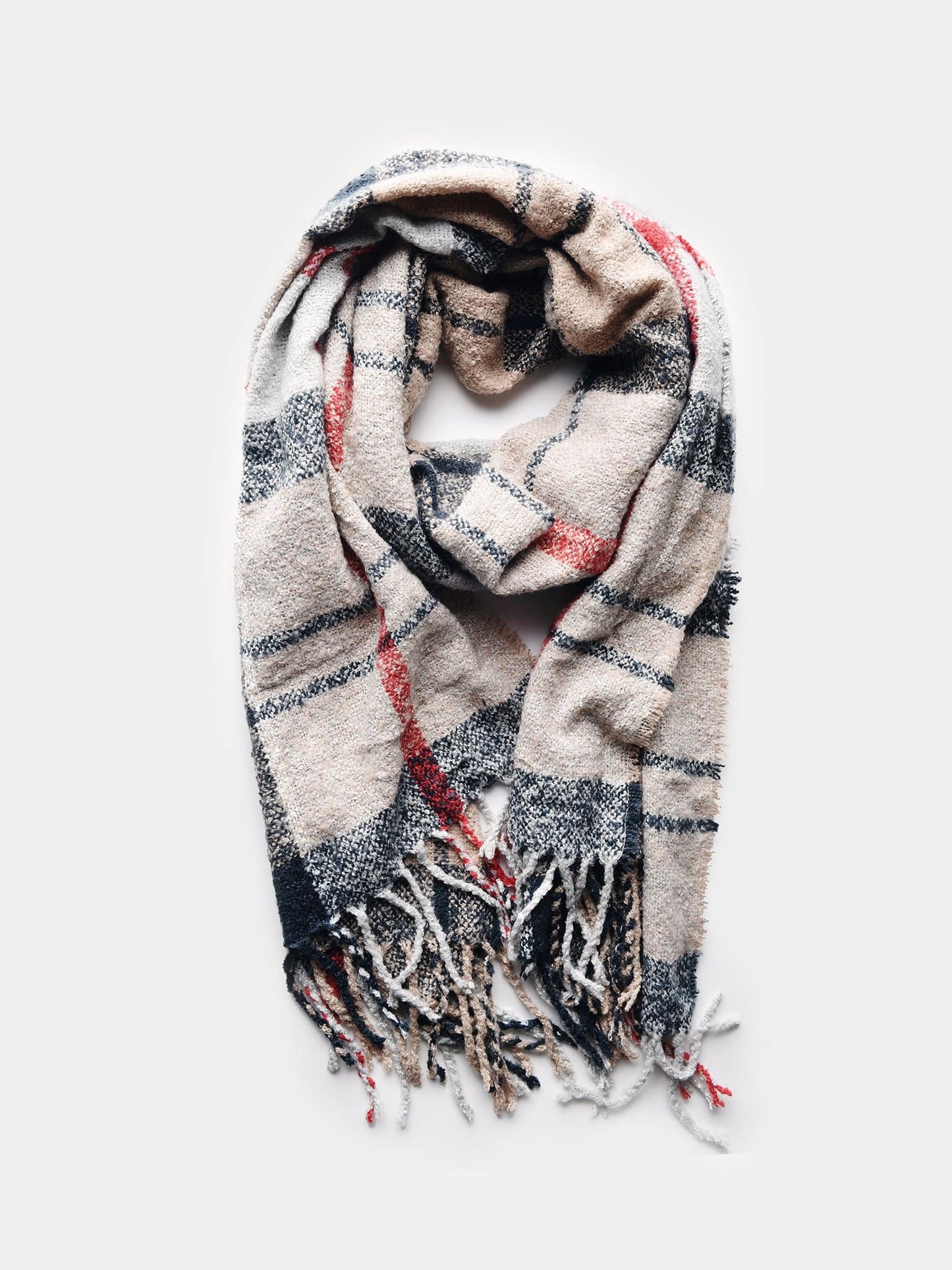 The Barbour Women's Tartan Boucle Scarf is soft to the touch and features fringe and a tasseled hem for added style.