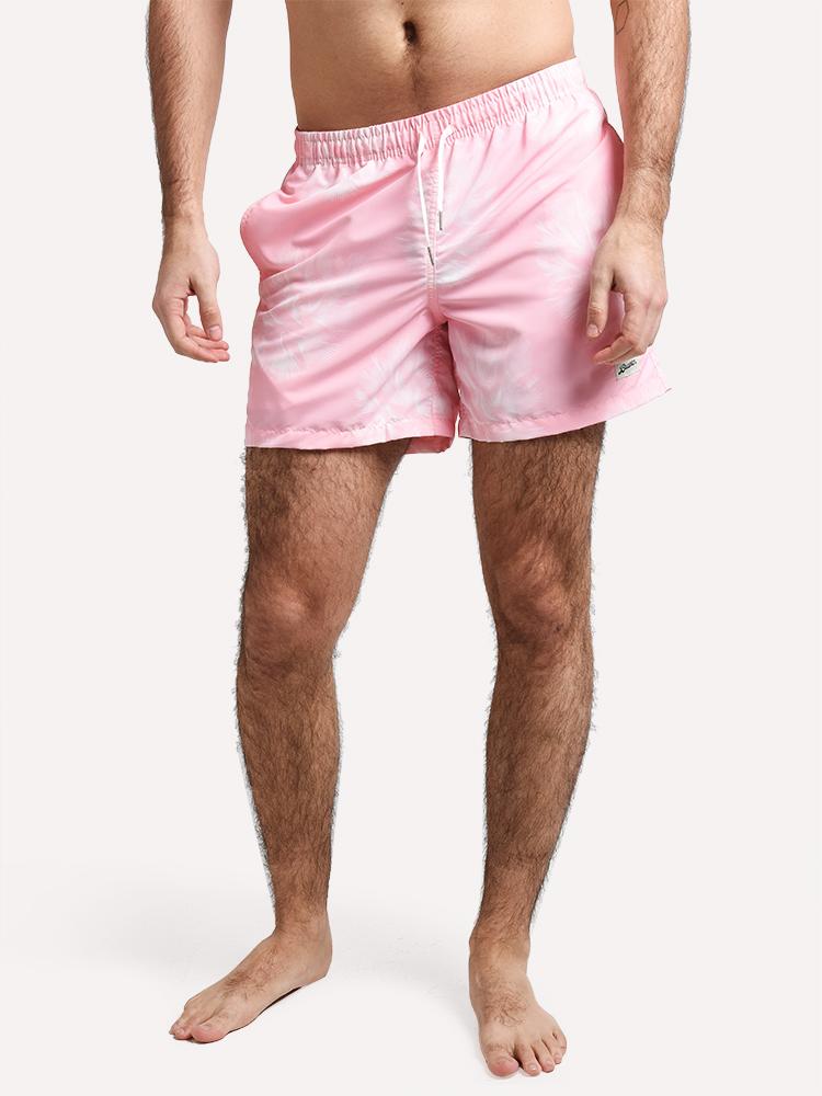 You'll be ready to hit the beach and the boardwalk in the Bather Pink Birds Eye Palms Swim Trunk.