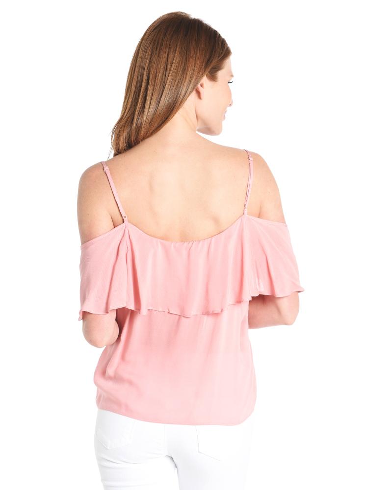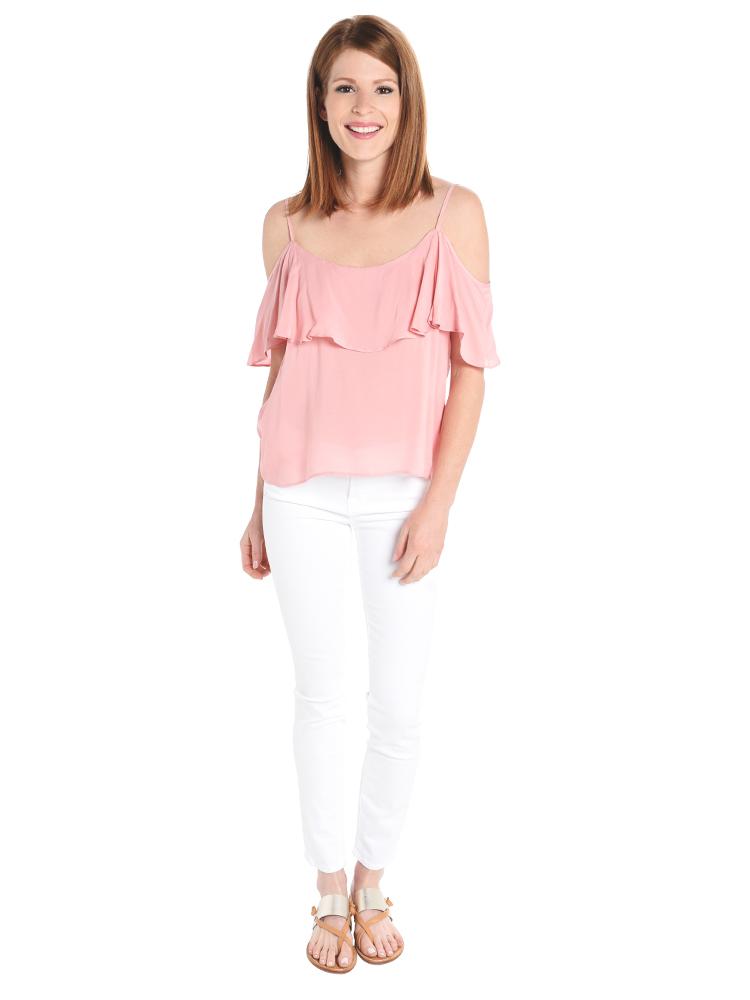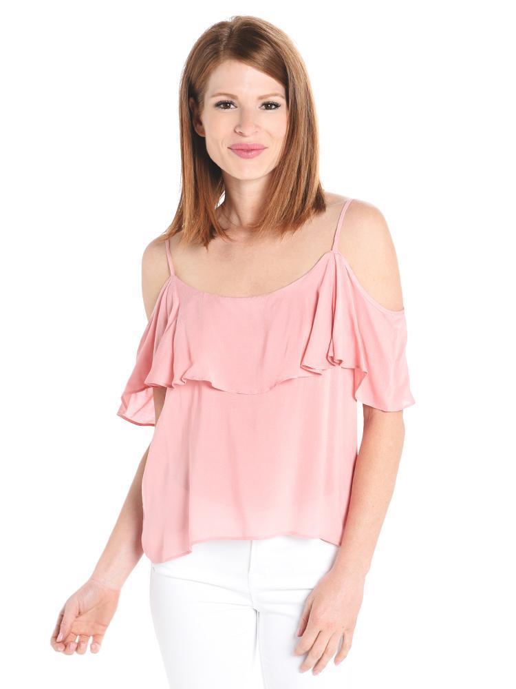 The BB Dakota Delafield Top is right on trend with cold shoulders and a ruffle.