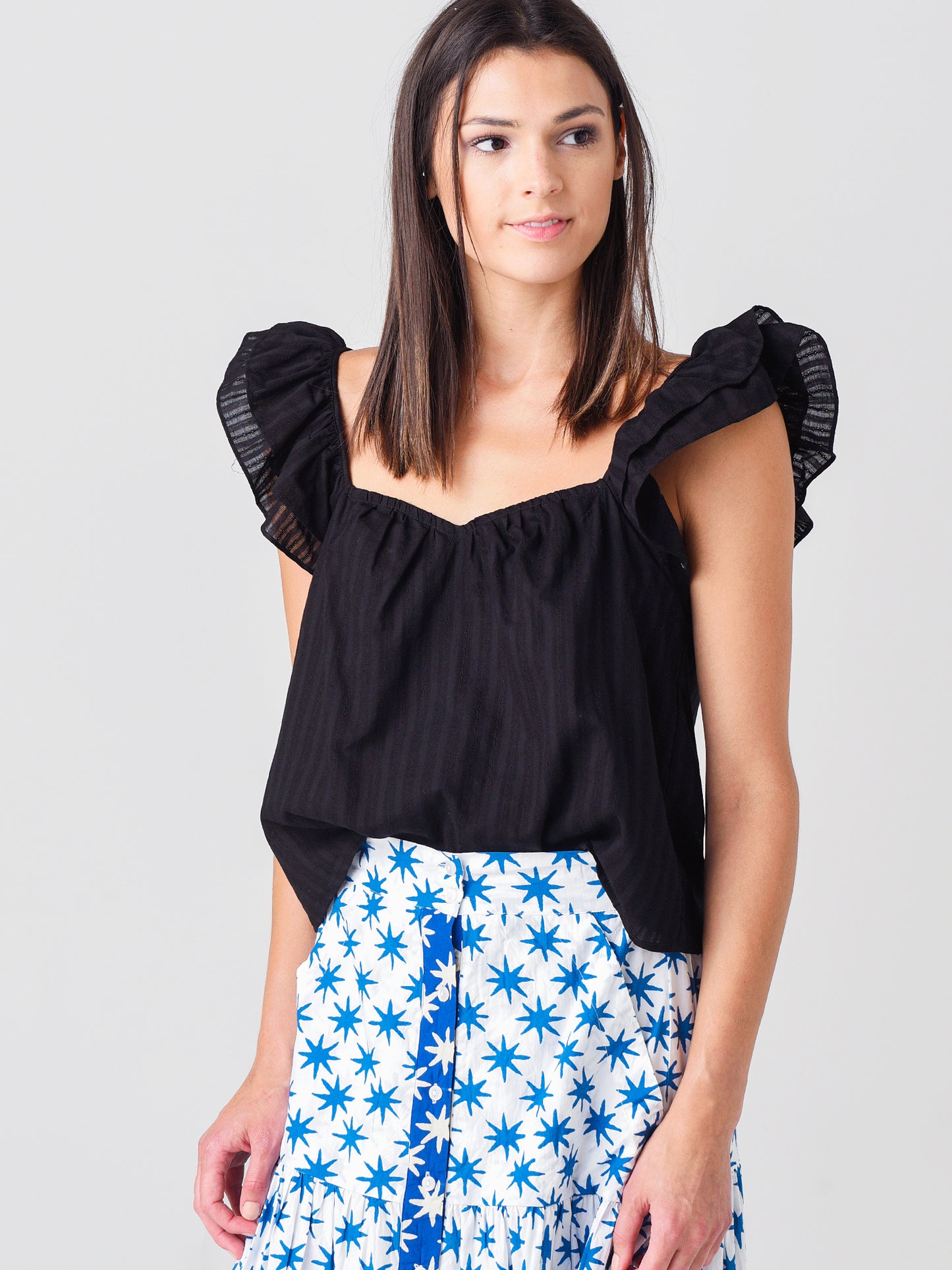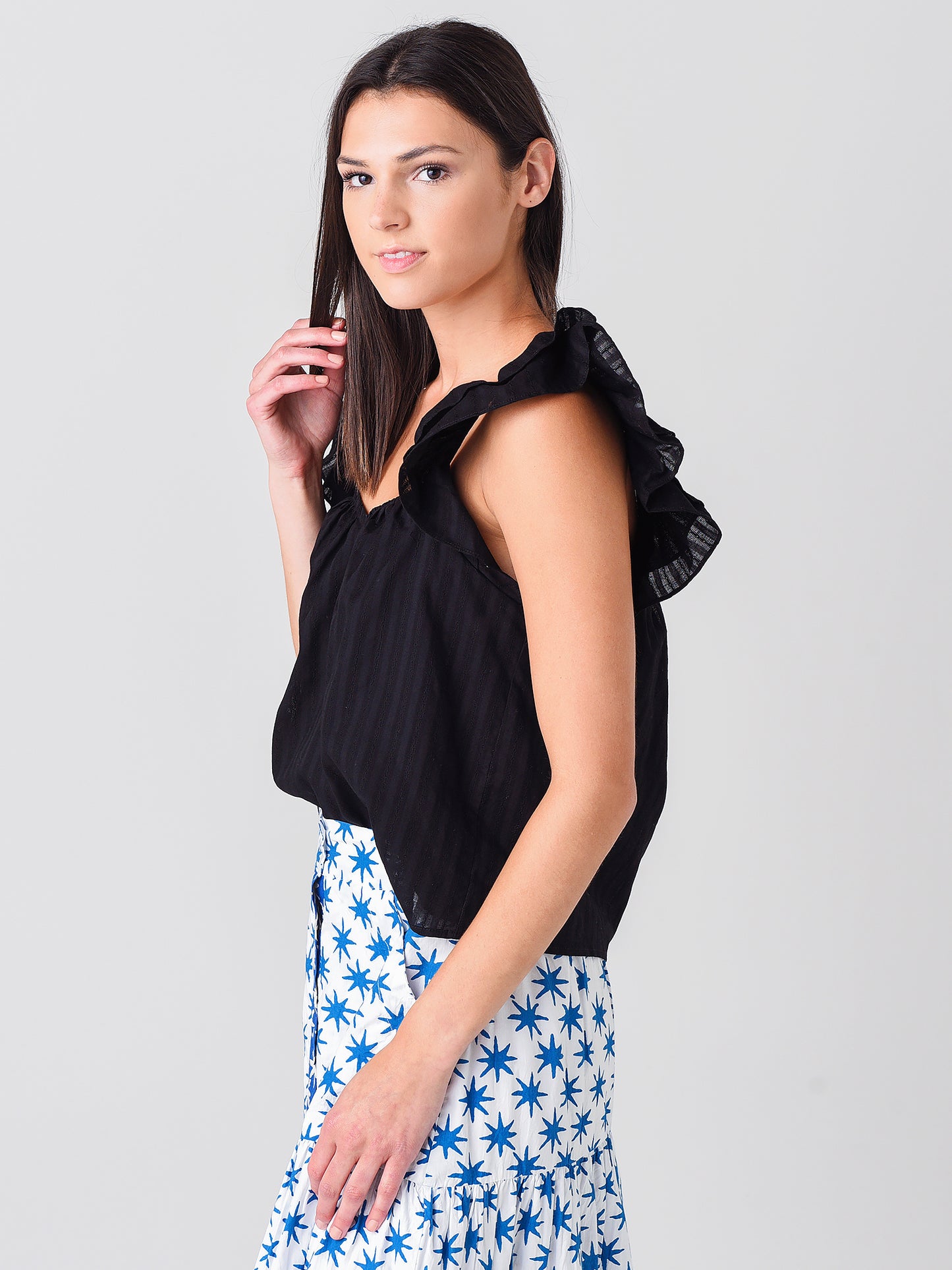 - Model is wearing size Small top.