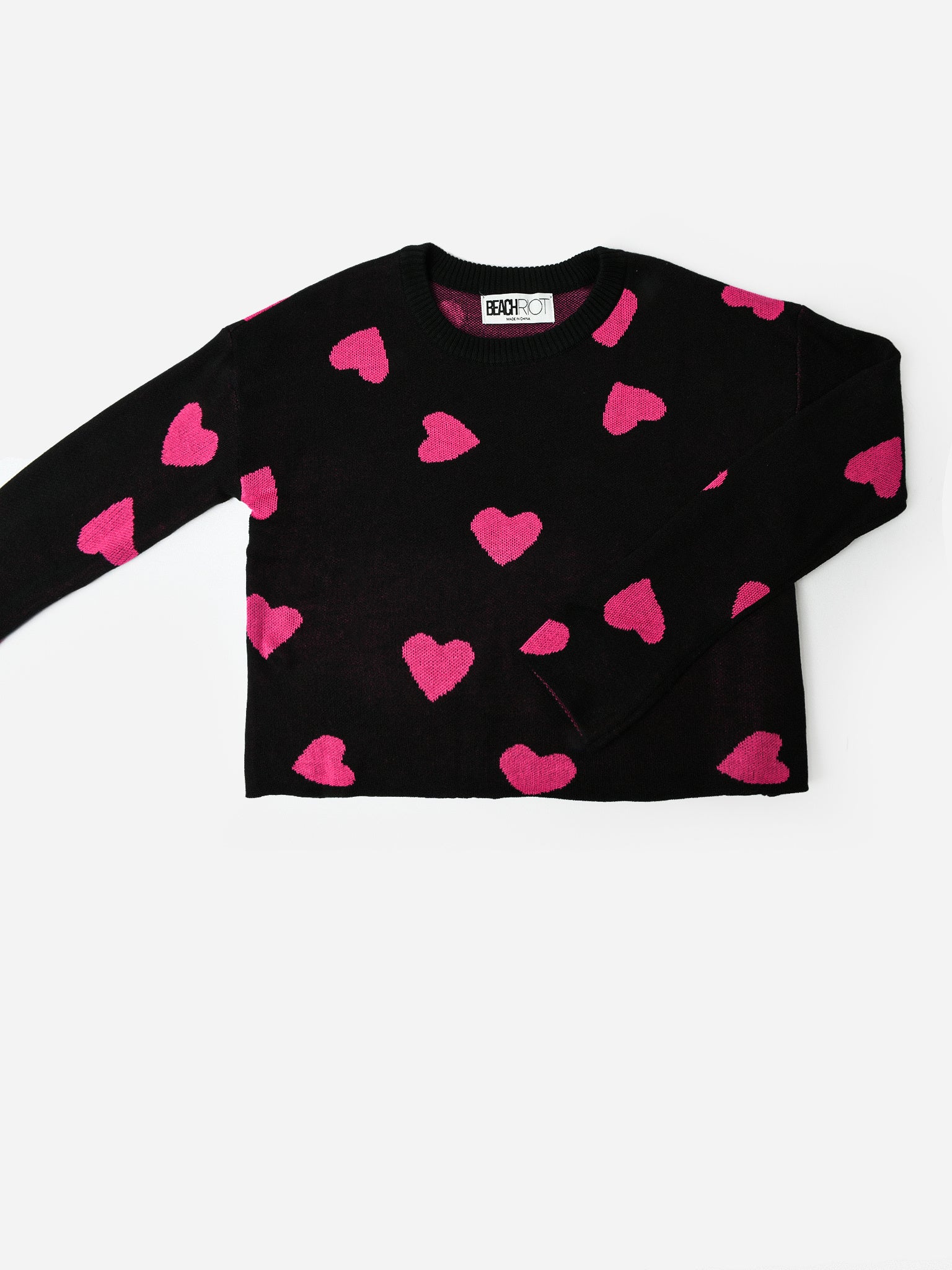 Soft knit sweater with a sweet heart print.