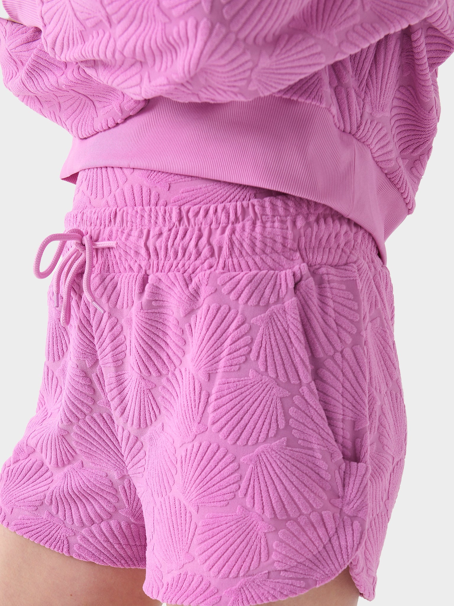 A retro-inspired short made from shell-printed, terry jacquard fabric.