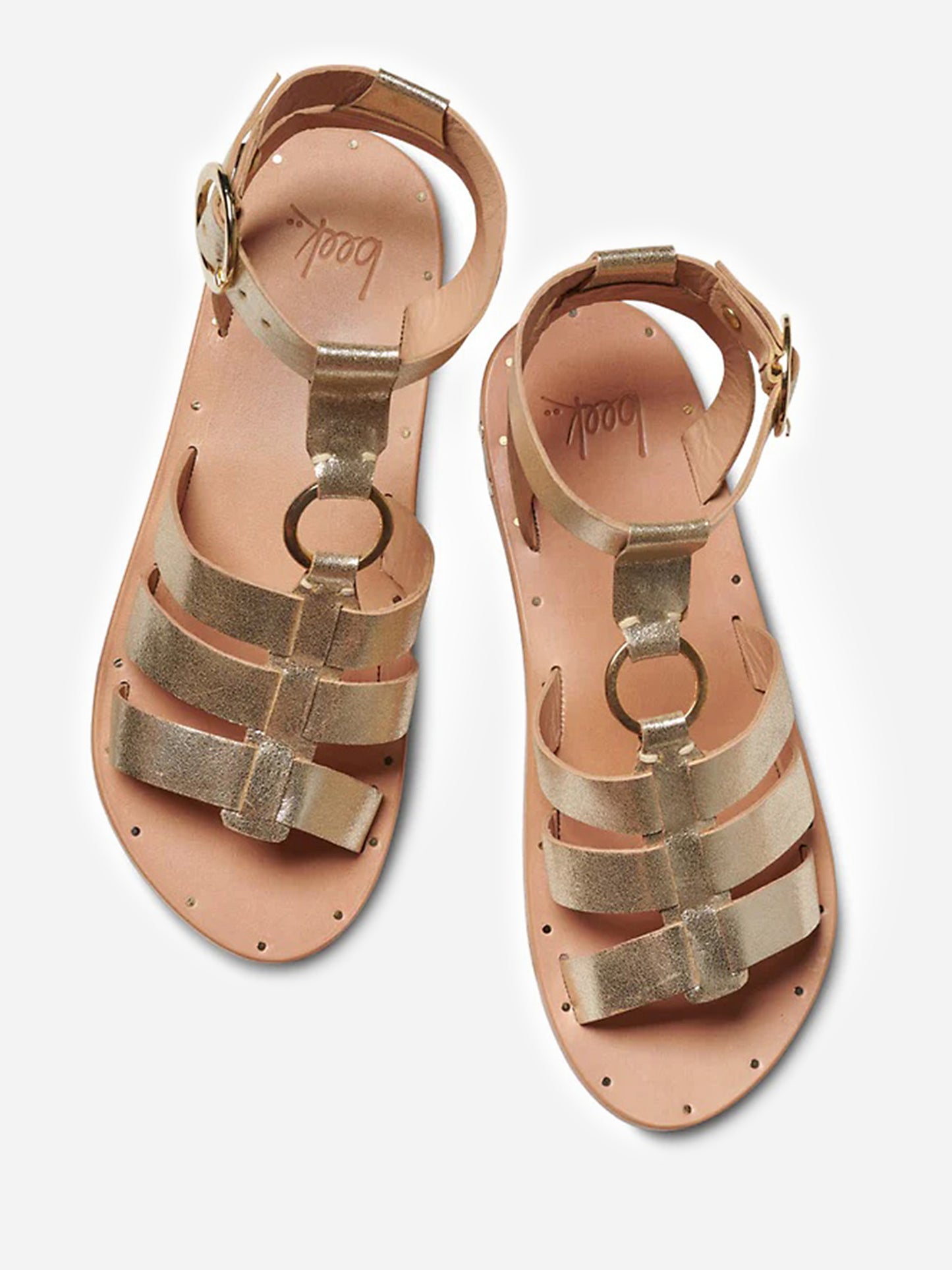 A gladiator-inspired sandal made from vegetable-tanned leather with a comfortable molded arch.