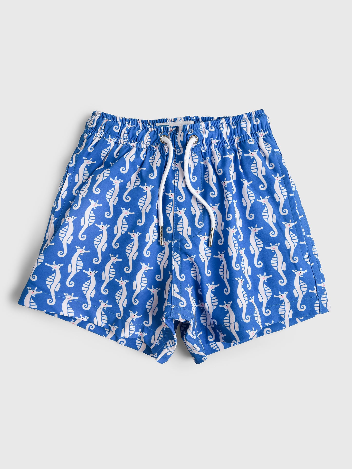 This fun swim trunk features a charming seahorse print and a comfortable design made with four-way stretch and a mesh liner.