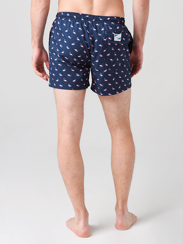 We don't think there's anything more tropical than a flock of flamingos, so get ready for the ultimate tropical getaway with the Bermies Men's Flamingo Swim Trunk!