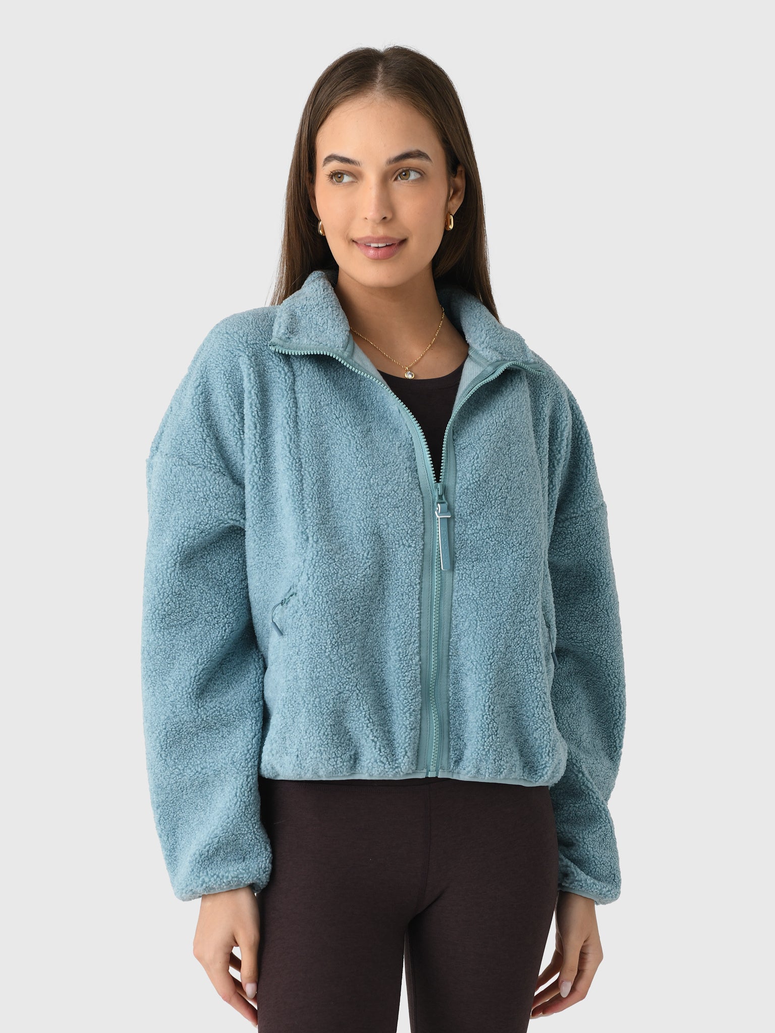 This jacket is crafted from a plush boucle fleece. It has a tall, cozy collar and pockets that keep your essentials close at hand, making it the perfect blend of comfort and function.