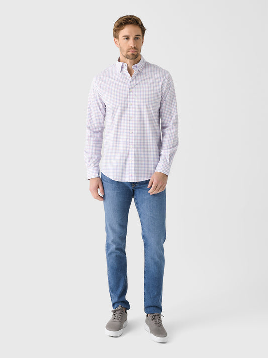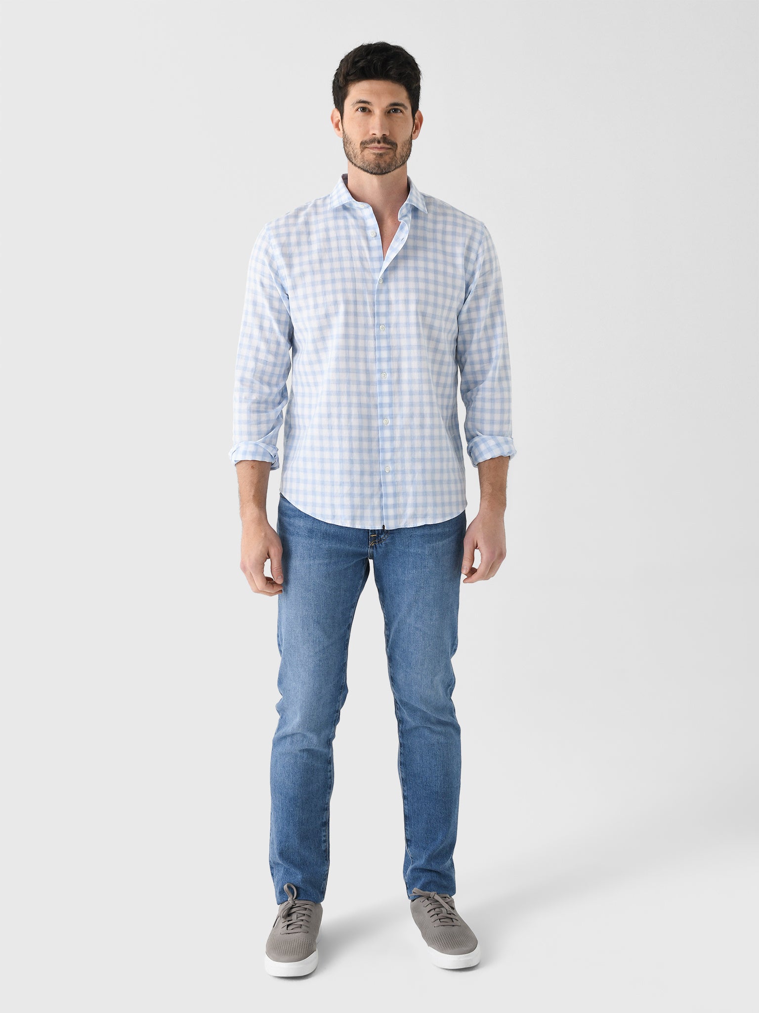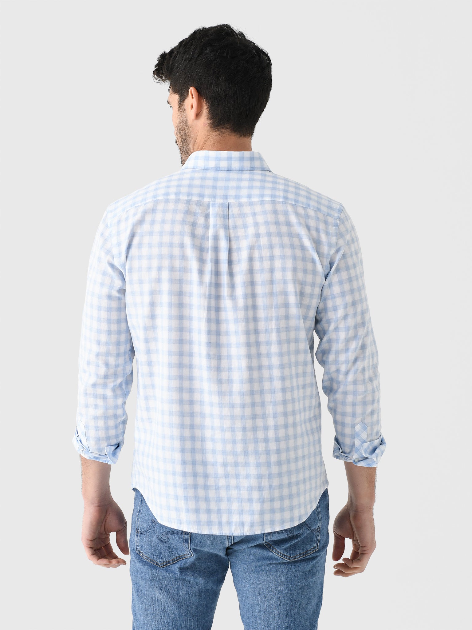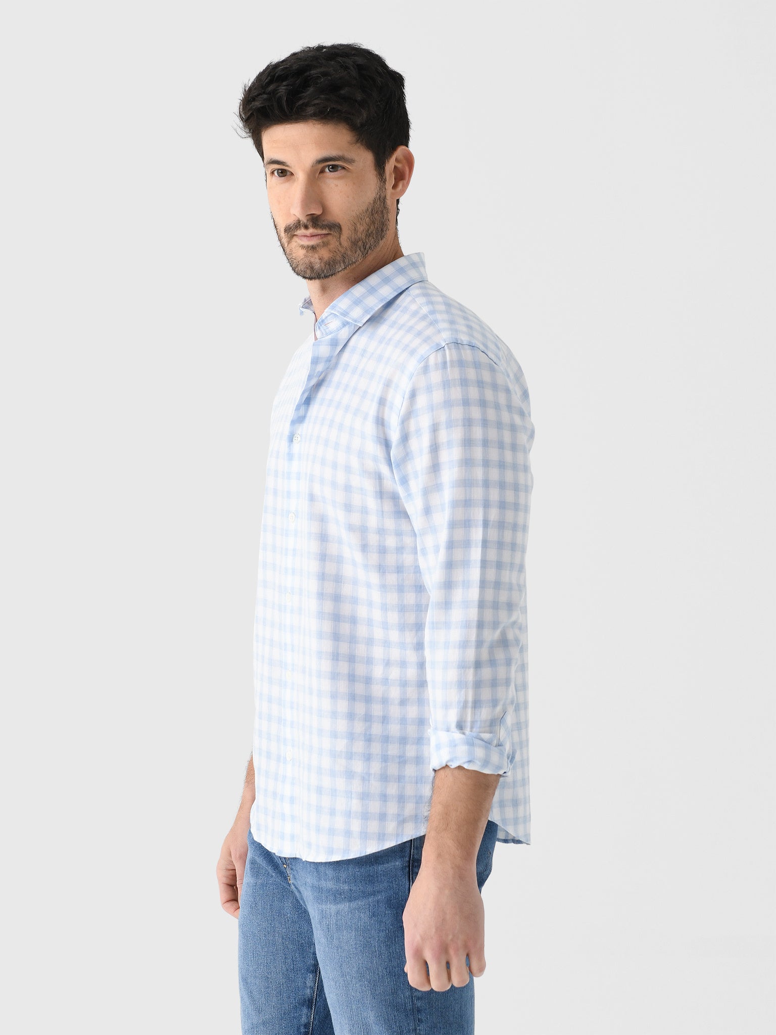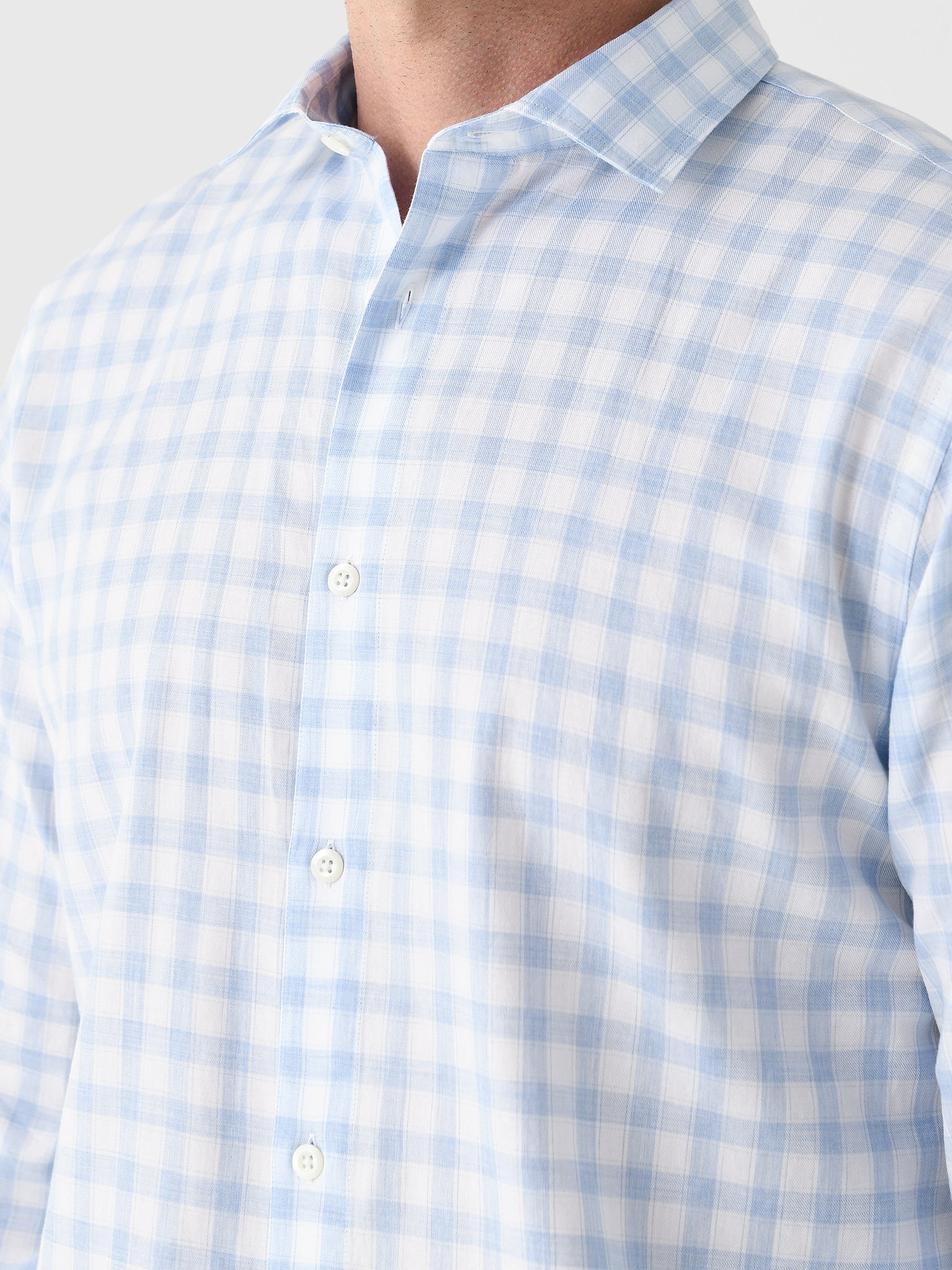 A classic white and blue plaid sports shirt made from lightweight cotton.