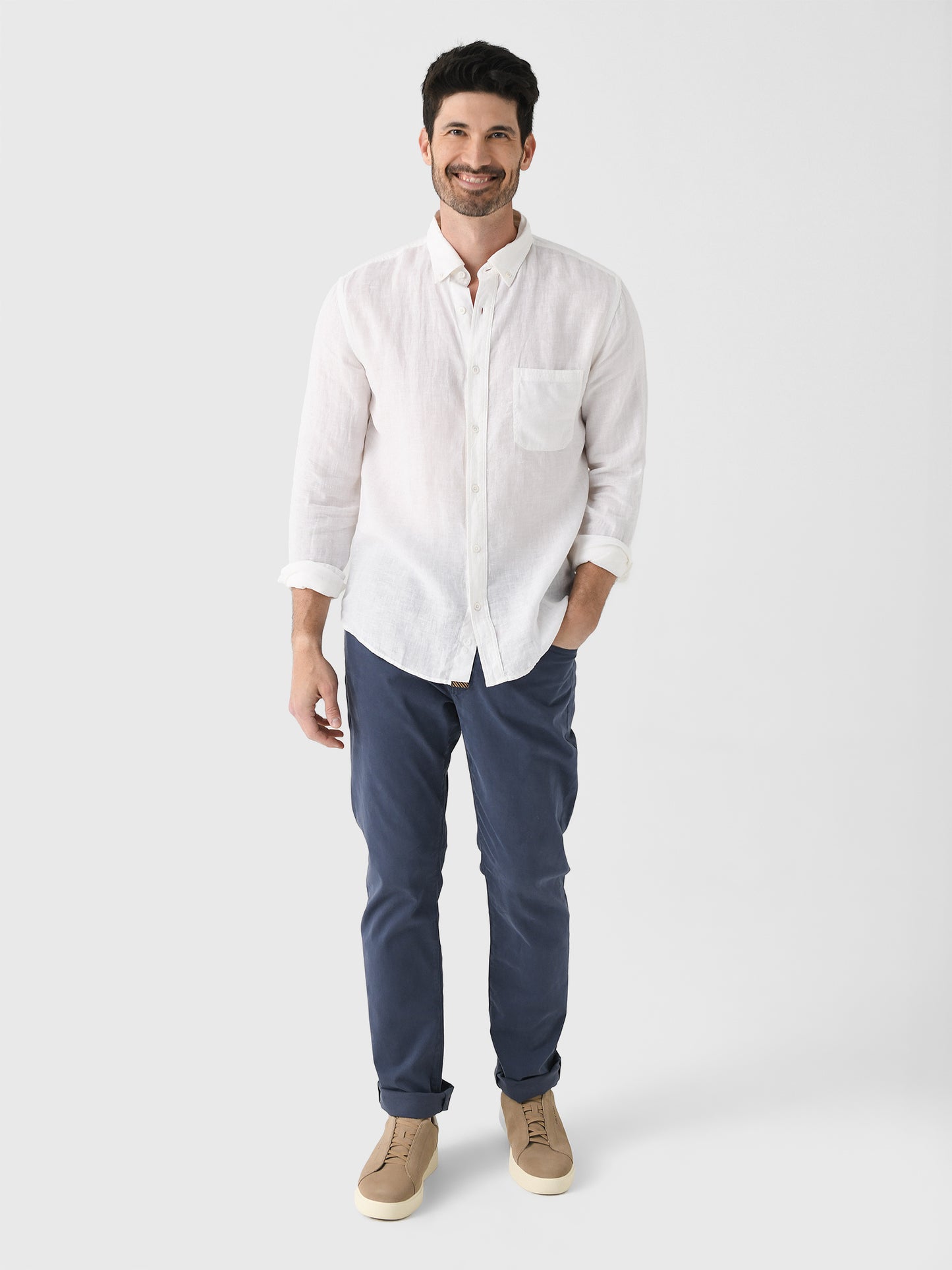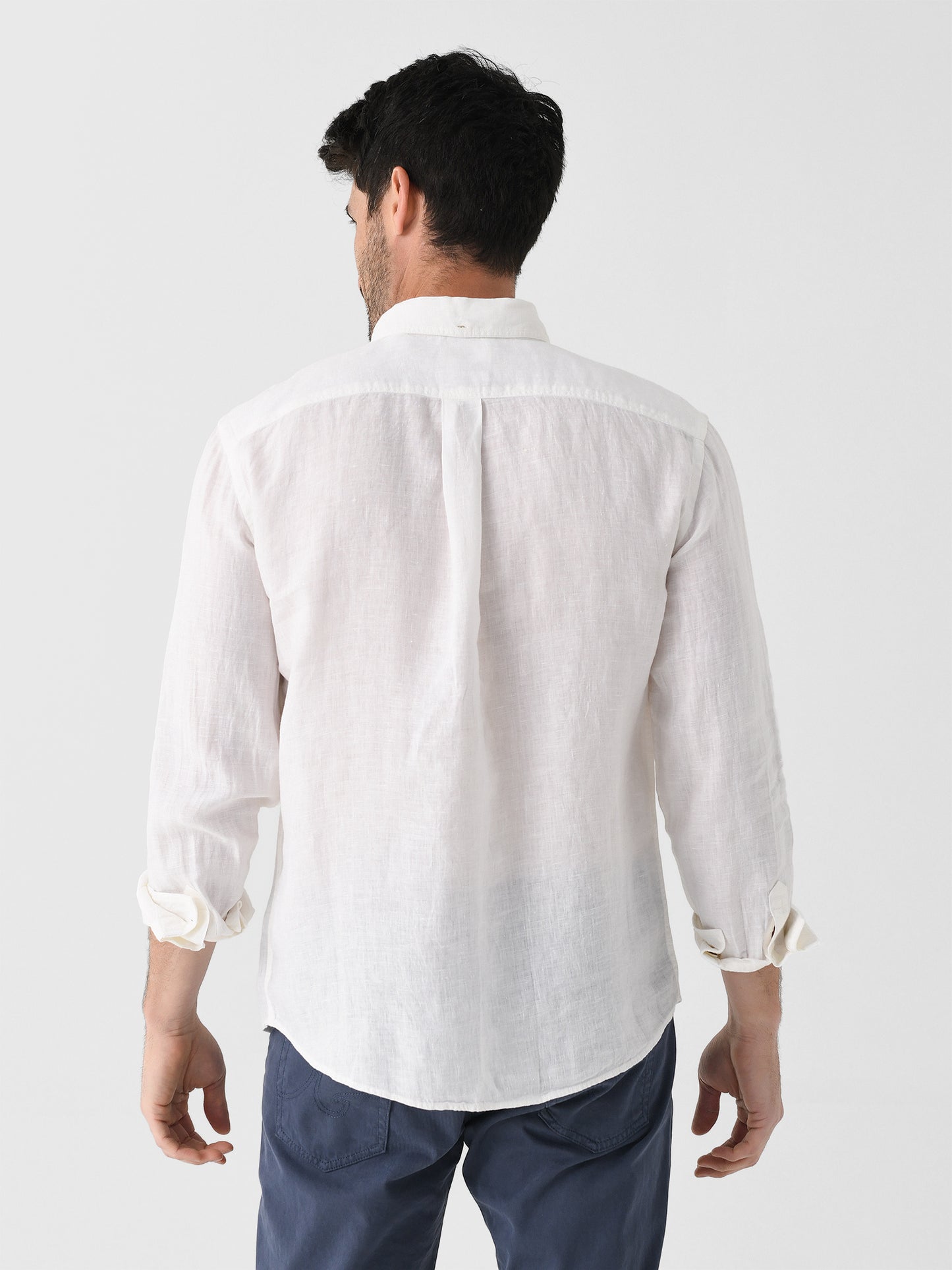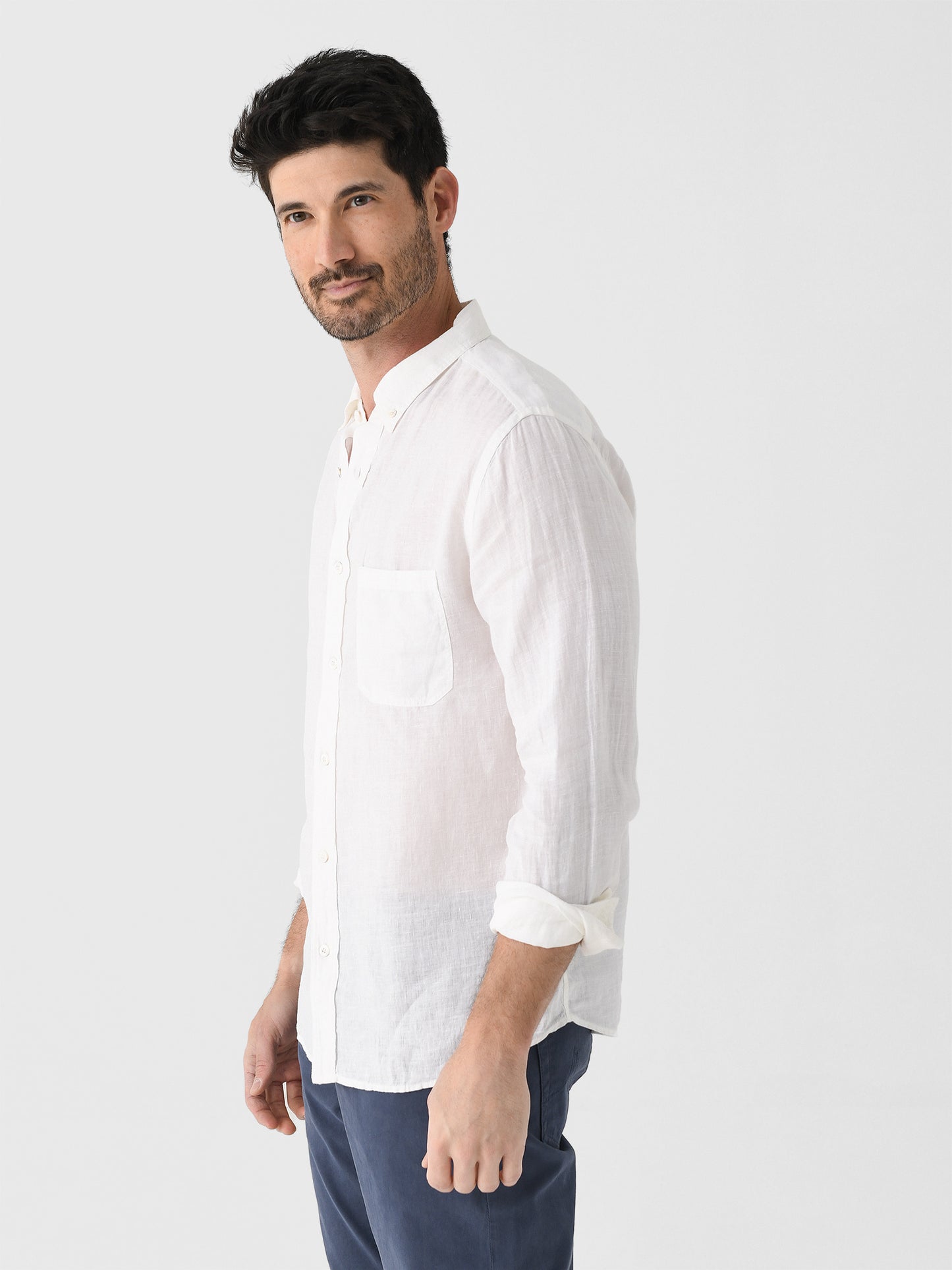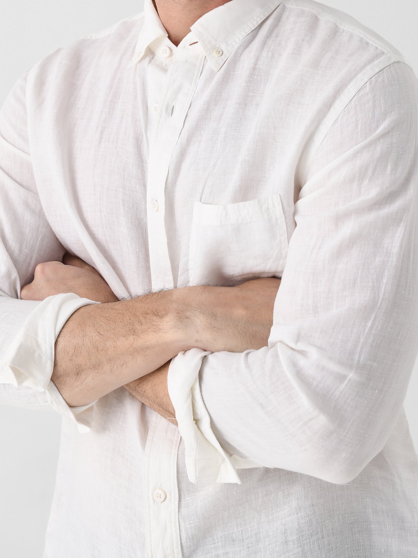 This classic button-down is made from lightweight linen and features defined details, such as mother-of-pearl buttons and a hidden heirloom ribbon.