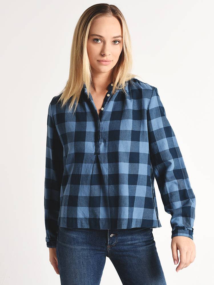 Update your fall flannel with the chic Birds of Paradise The Kristen Henley Blouse.