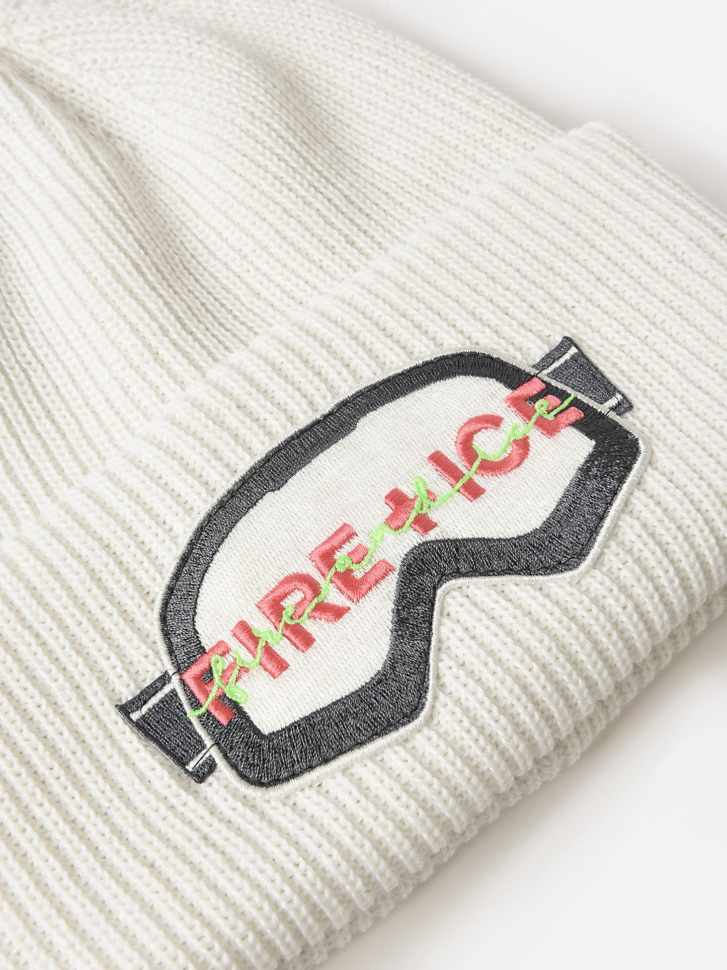 A classic beanie made from a wool blend with a custom ski goggle logo patch.